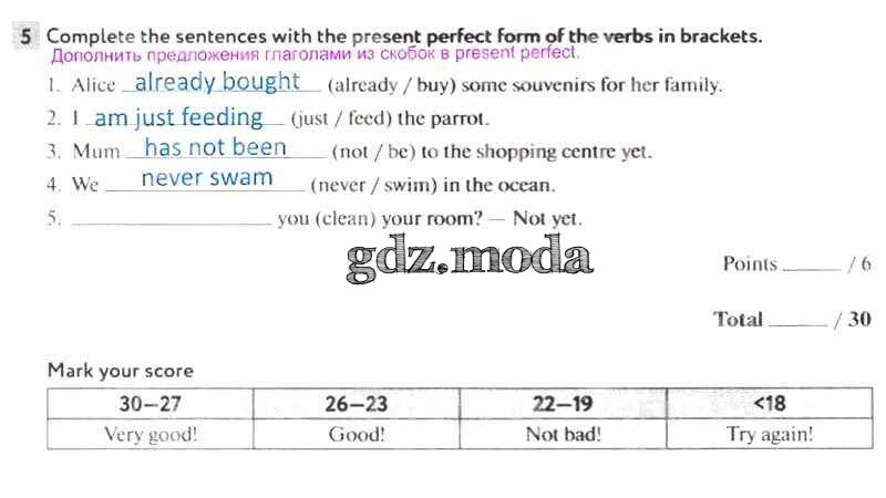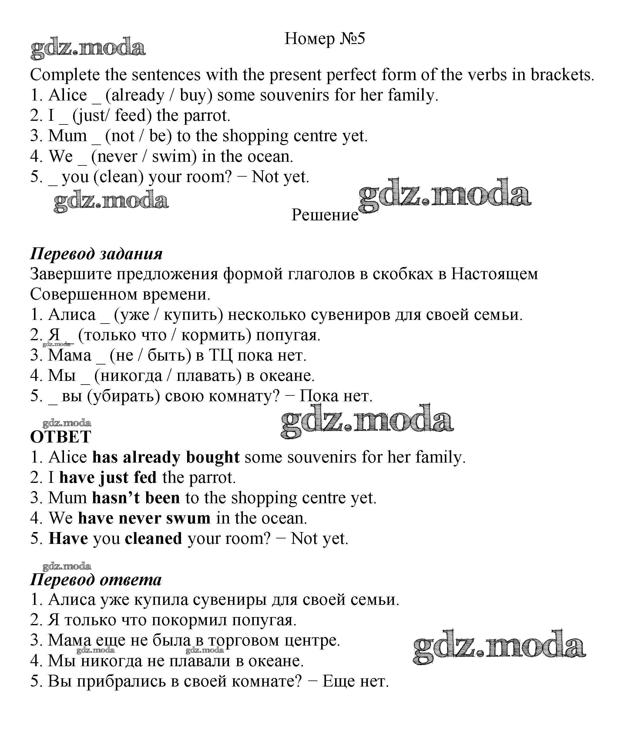 ОТВЕТ на задание № 5 Рабочая тетрадь по Английскому языку 5 класс Биболетова Enjoy English