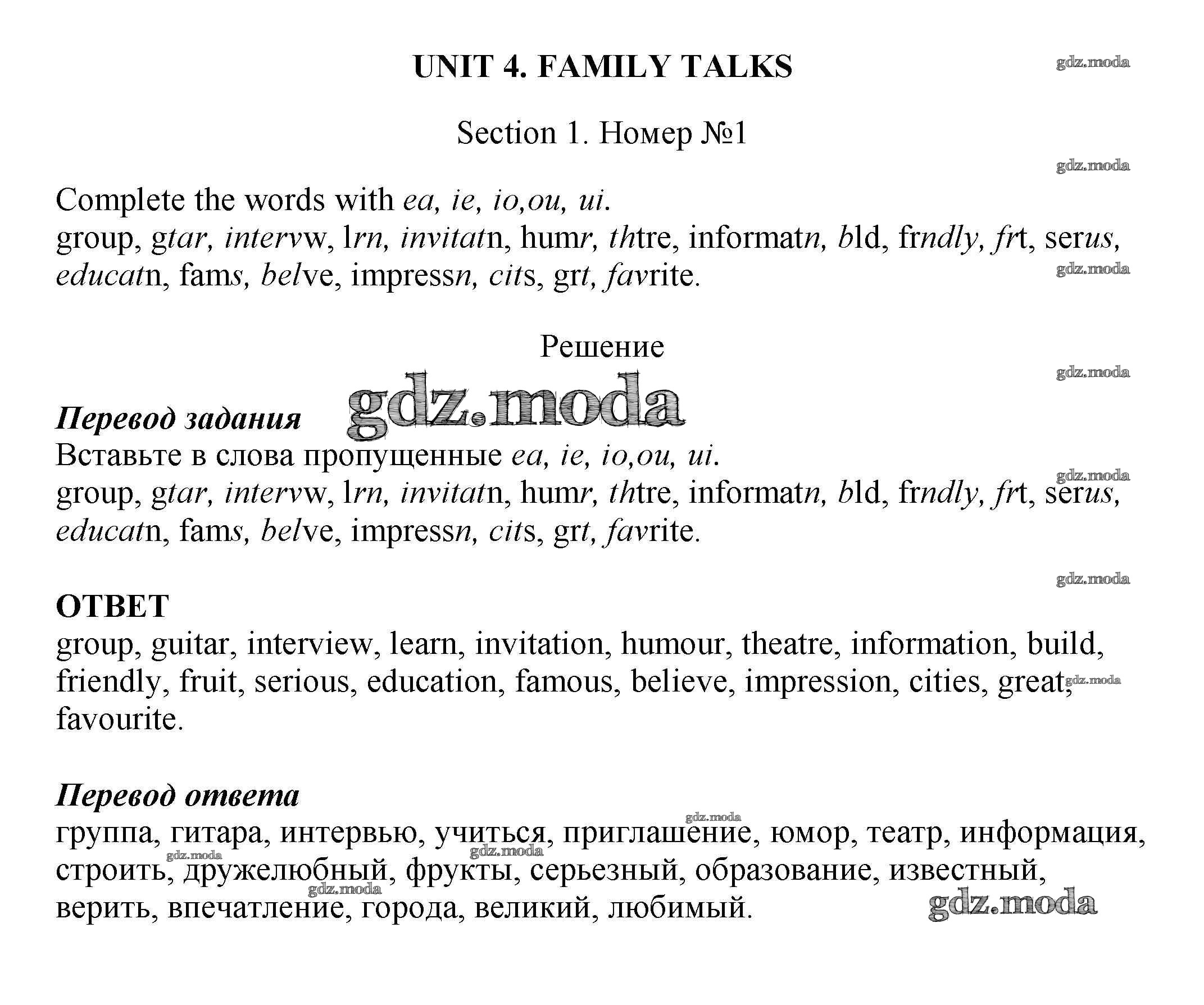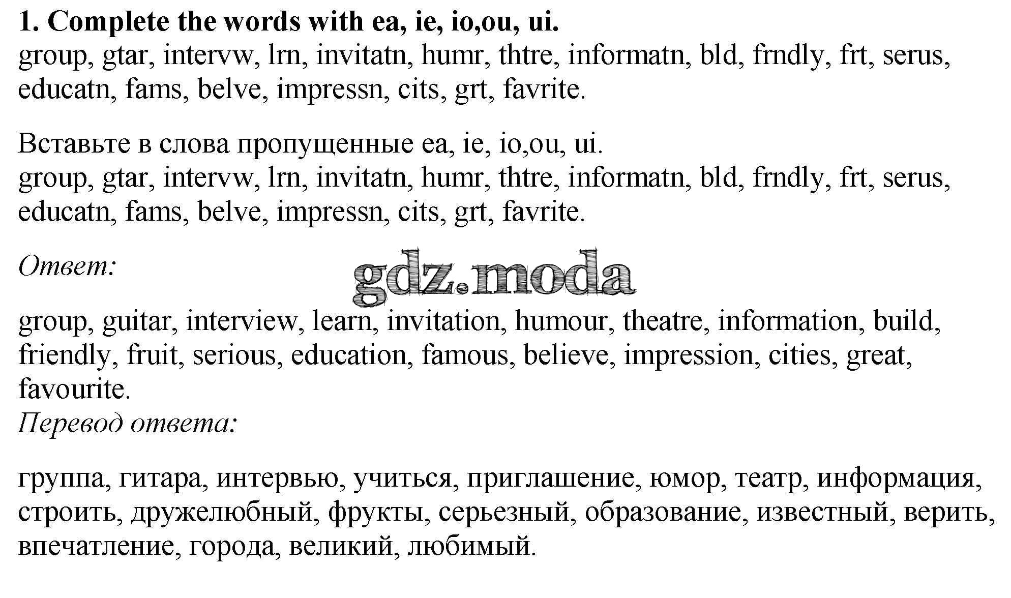 ОТВЕТ на задание № 1 Рабочая тетрадь по Английскому языку 5 класс Биболетова Enjoy English