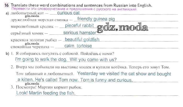 ОТВЕТ на задание № 16 Рабочая тетрадь по Английскому языку 5 класс Биболетова Enjoy English