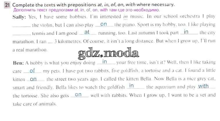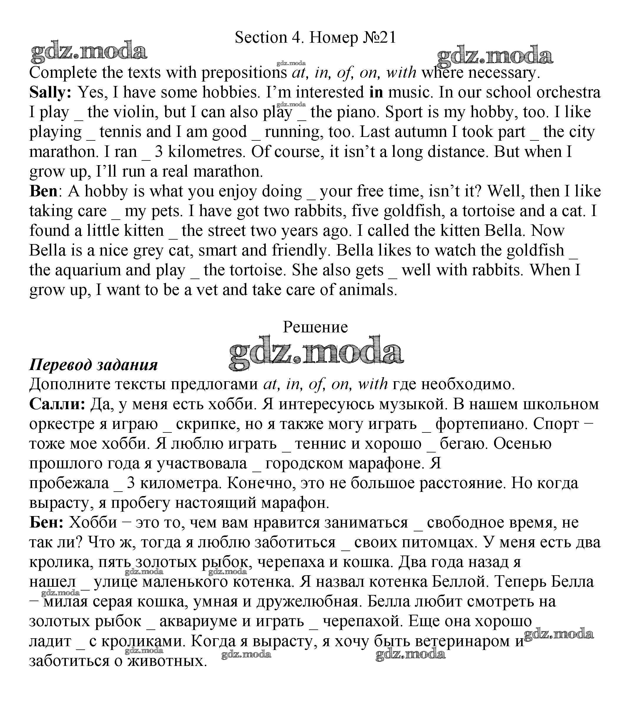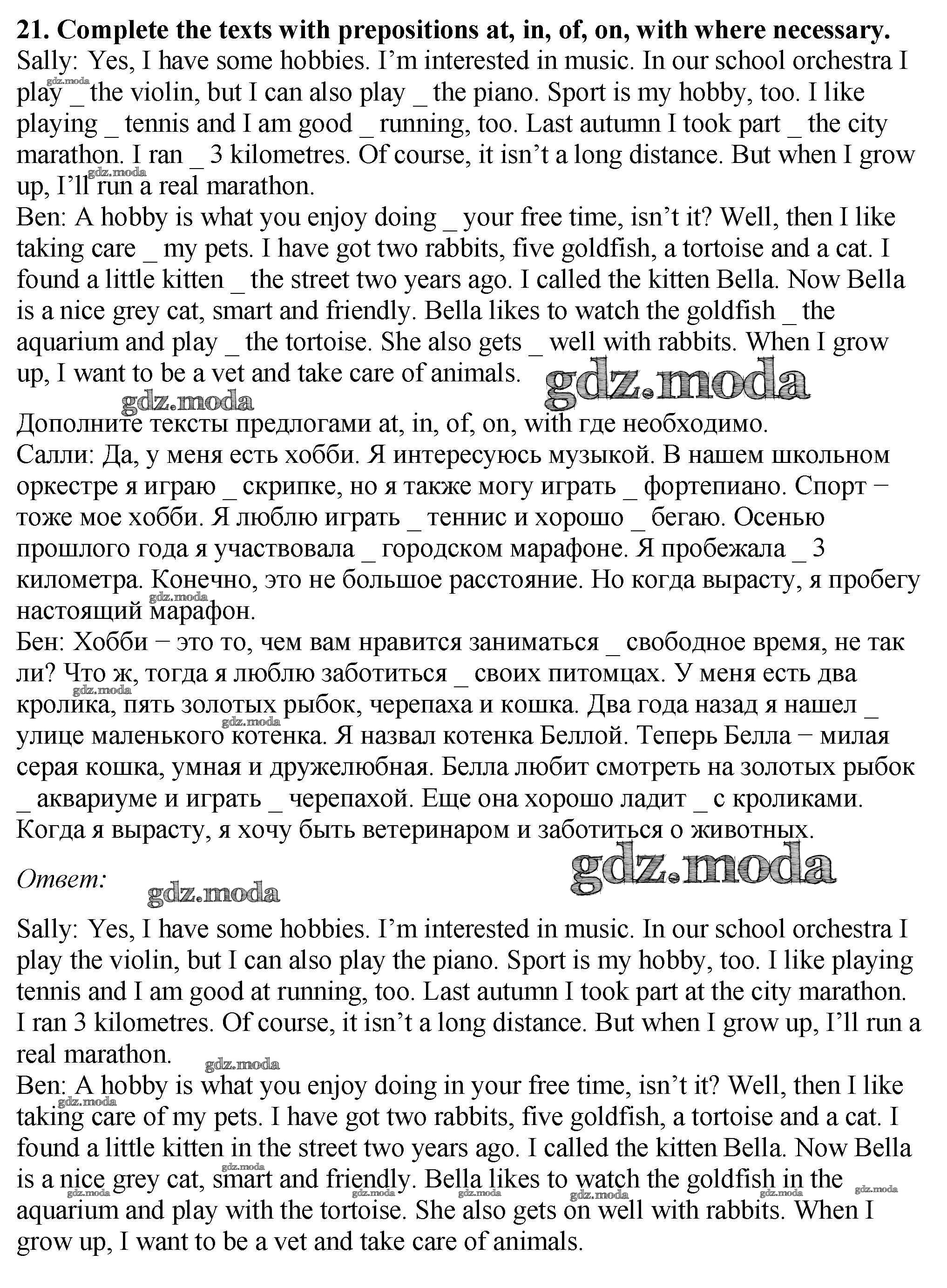 ОТВЕТ на задание № 21 Рабочая тетрадь по Английскому языку 5 класс Биболетова Enjoy English
