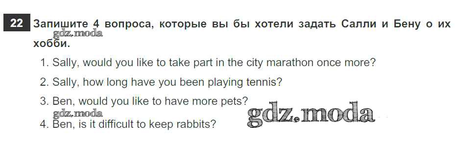 ОТВЕТ на задание № 22 Рабочая тетрадь по Английскому языку 5 класс Биболетова Enjoy English