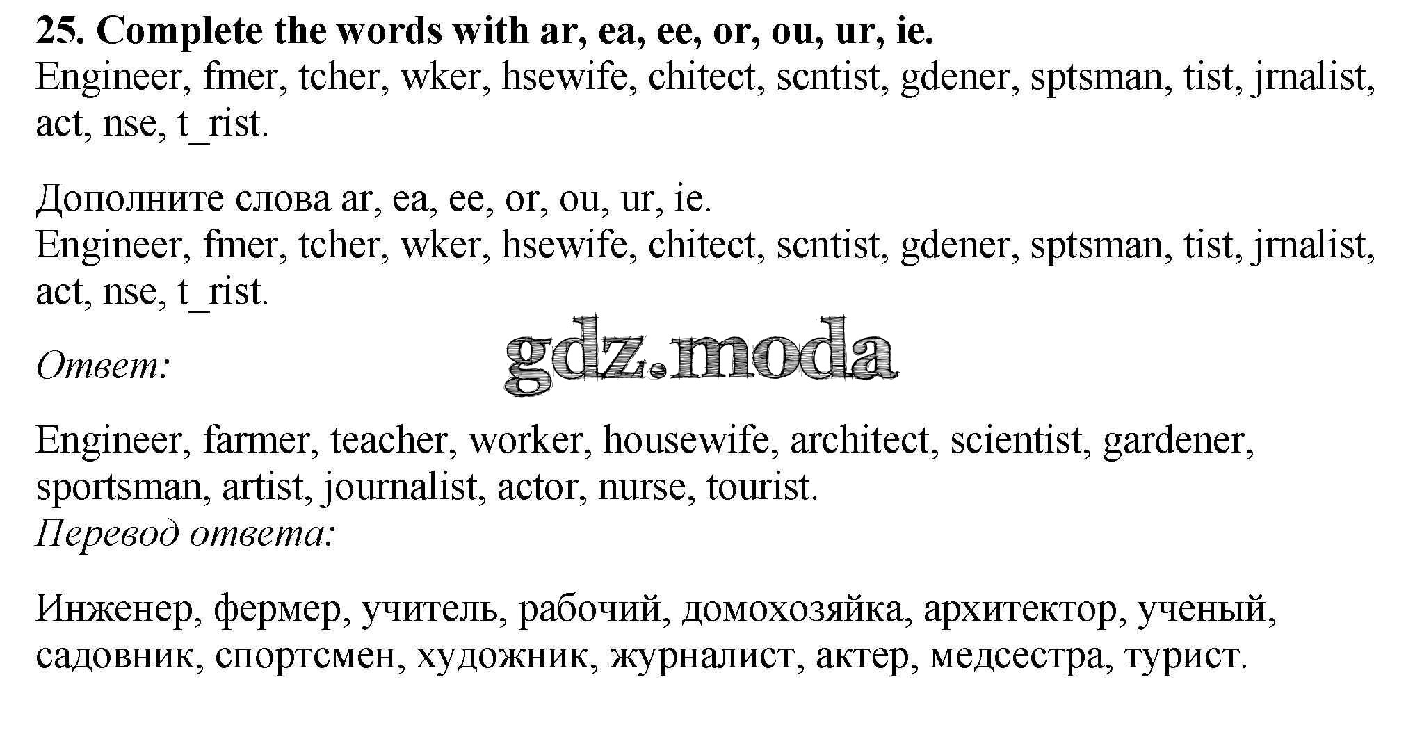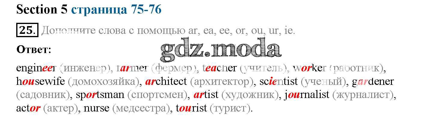ОТВЕТ на задание № 25 Рабочая тетрадь по Английскому языку 5 класс Биболетова Enjoy English
