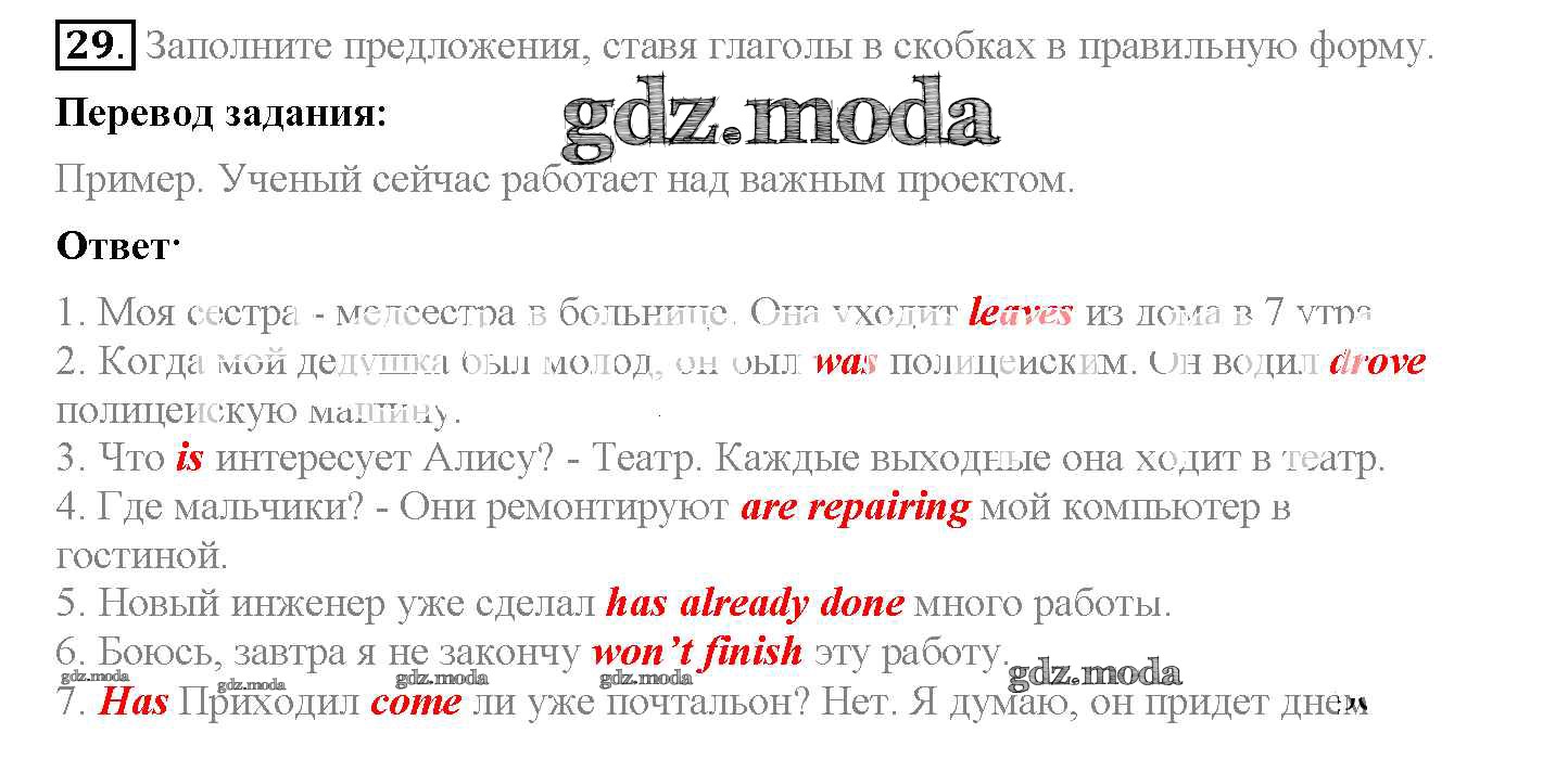 ОТВЕТ на задание № 29 Рабочая тетрадь по Английскому языку 5 класс Биболетова Enjoy English