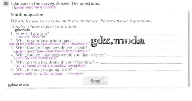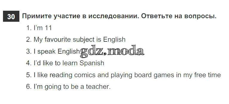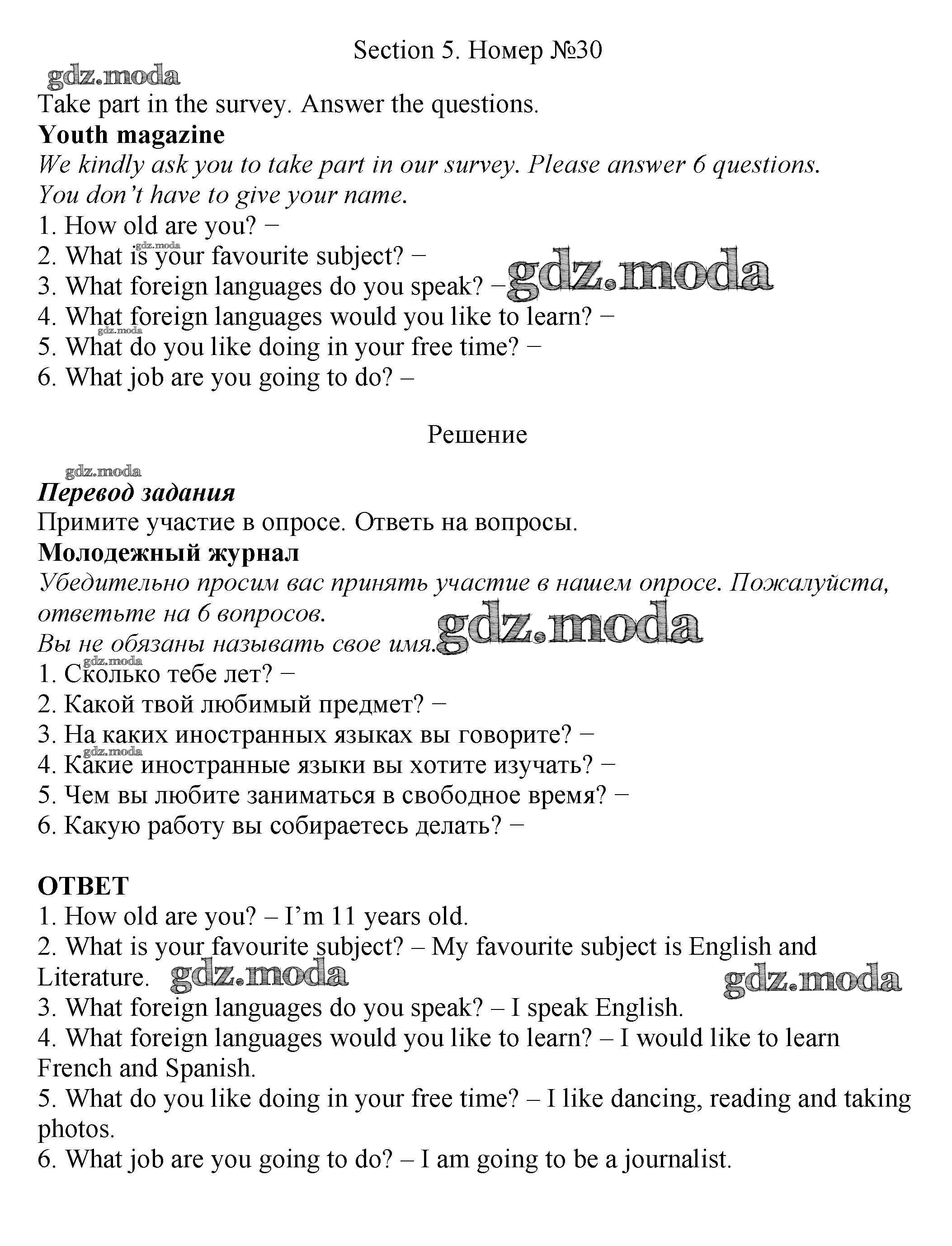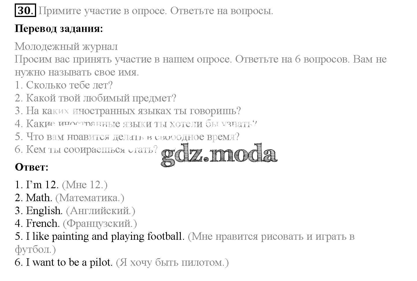 ОТВЕТ на задание № 30 Рабочая тетрадь по Английскому языку 5 класс Биболетова Enjoy English