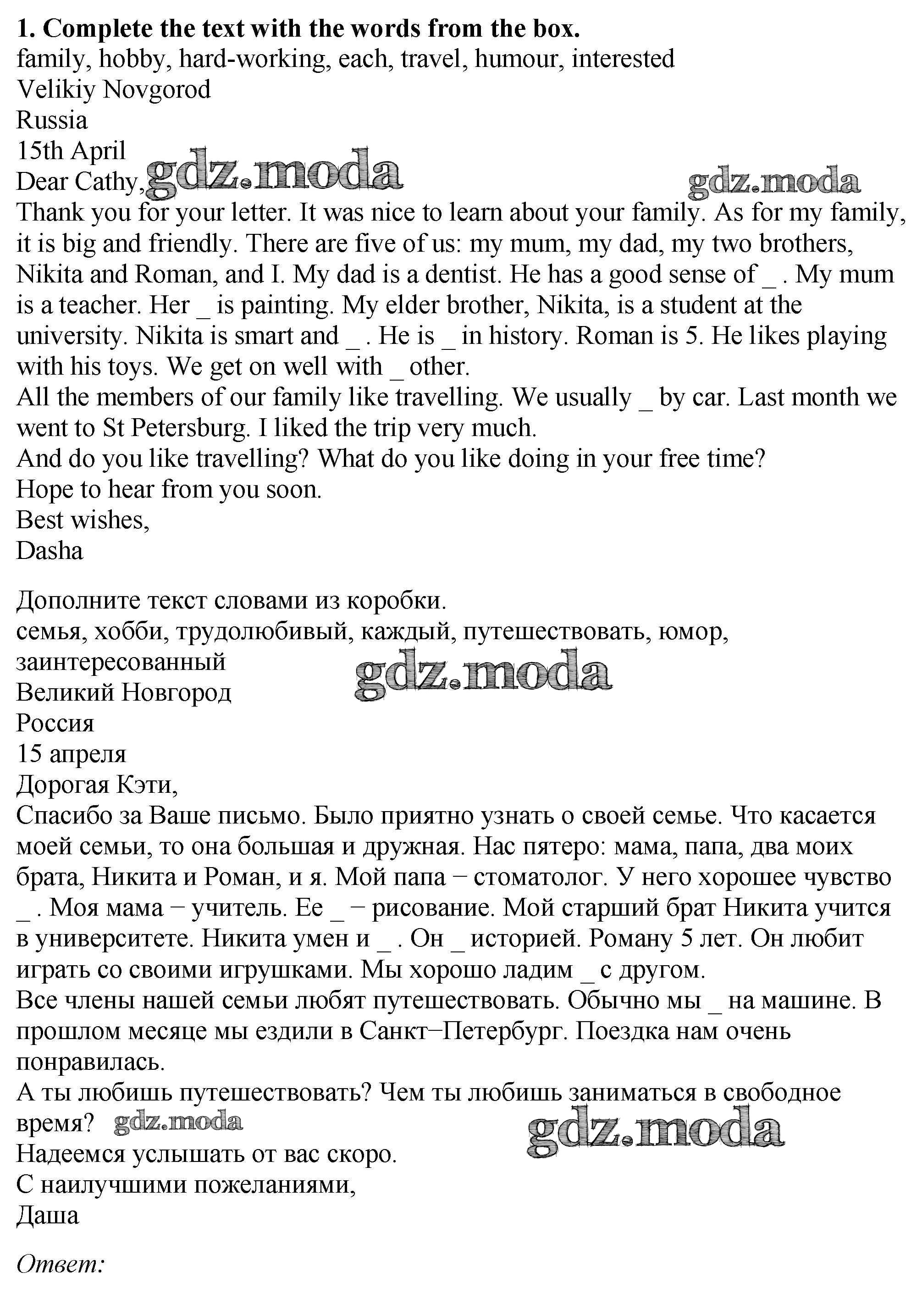 ОТВЕТ на задание № 1 Рабочая тетрадь по Английскому языку 5 класс Биболетова Enjoy English