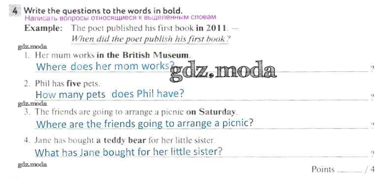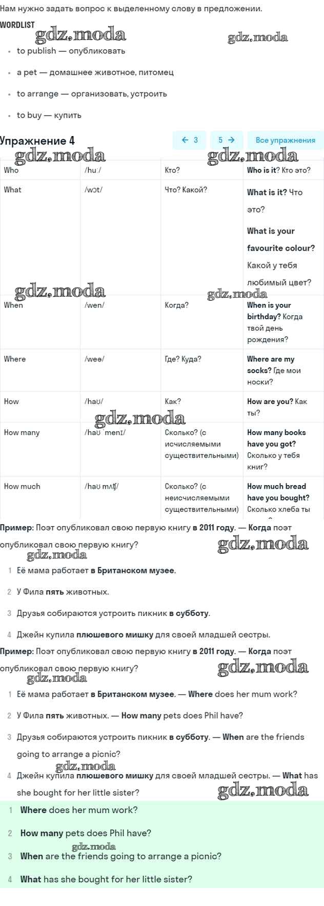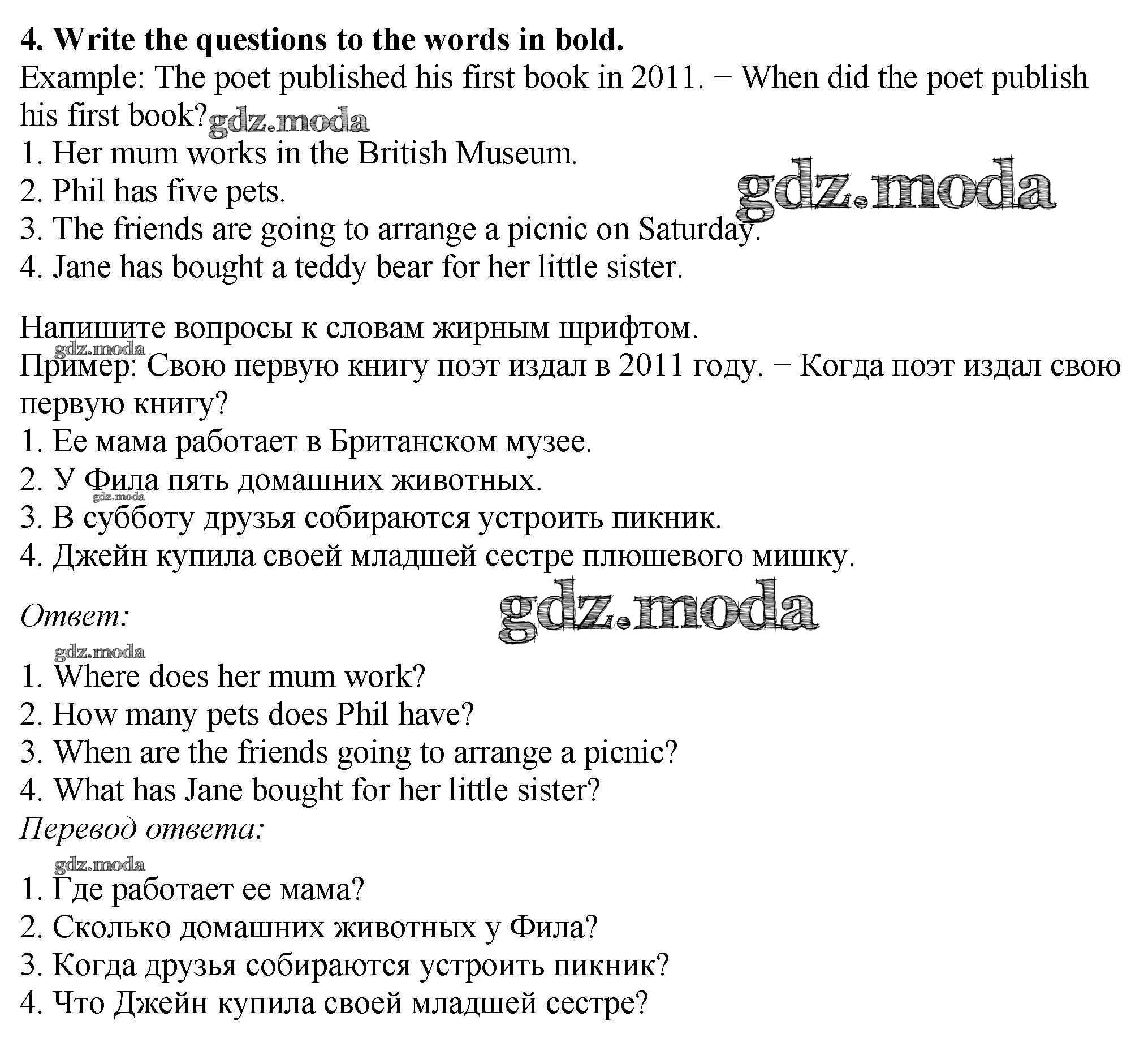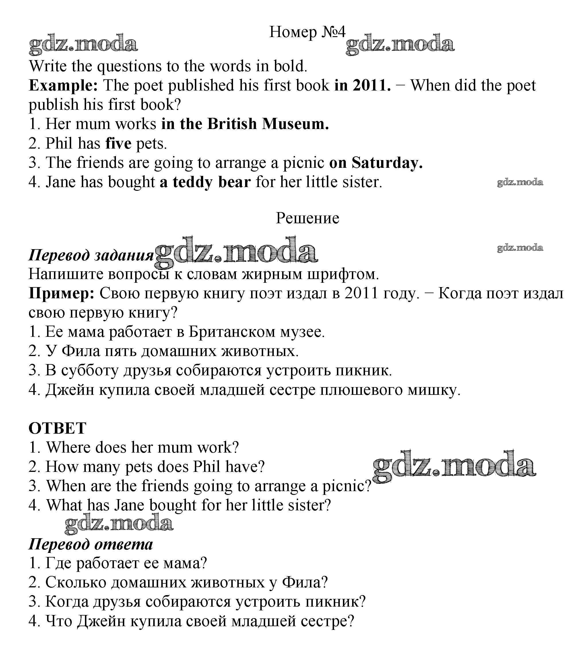 ОТВЕТ на задание № 4 Рабочая тетрадь по Английскому языку 5 класс Биболетова Enjoy English