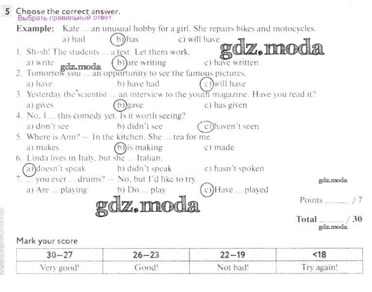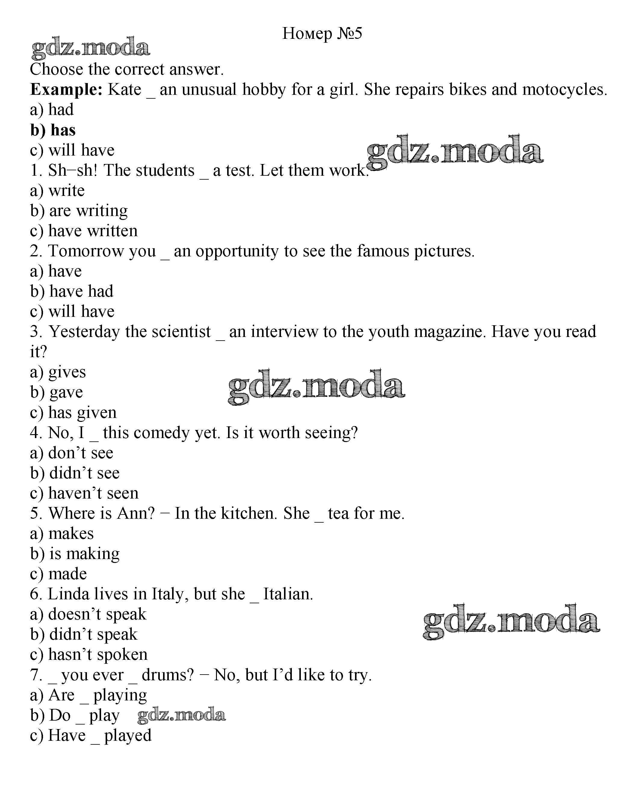 ОТВЕТ на задание № 5 Рабочая тетрадь по Английскому языку 5 класс Биболетова Enjoy English