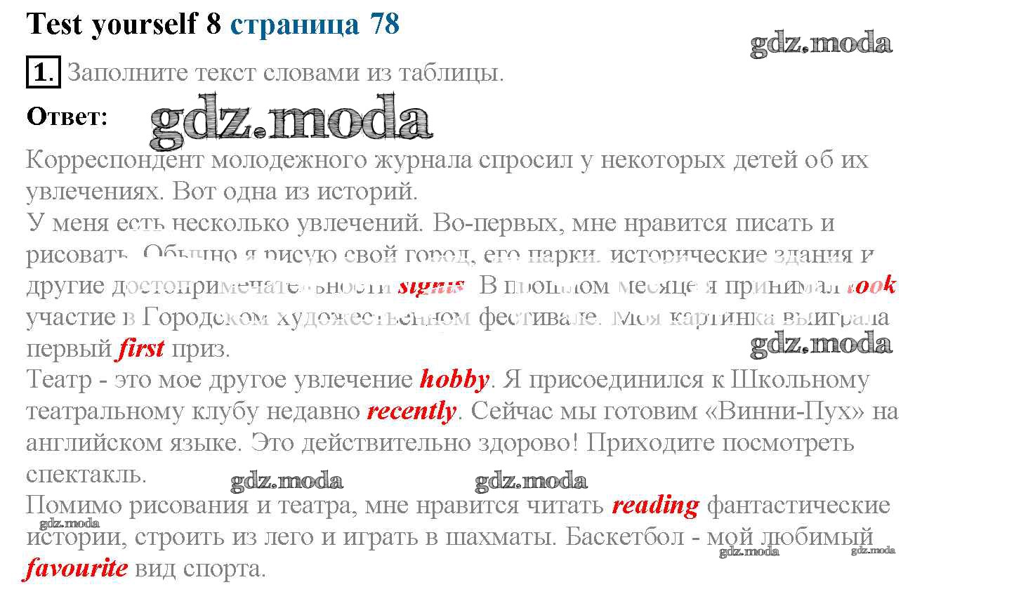 ОТВЕТ на задание № 1 Рабочая тетрадь по Английскому языку 5 класс Биболетова Enjoy English