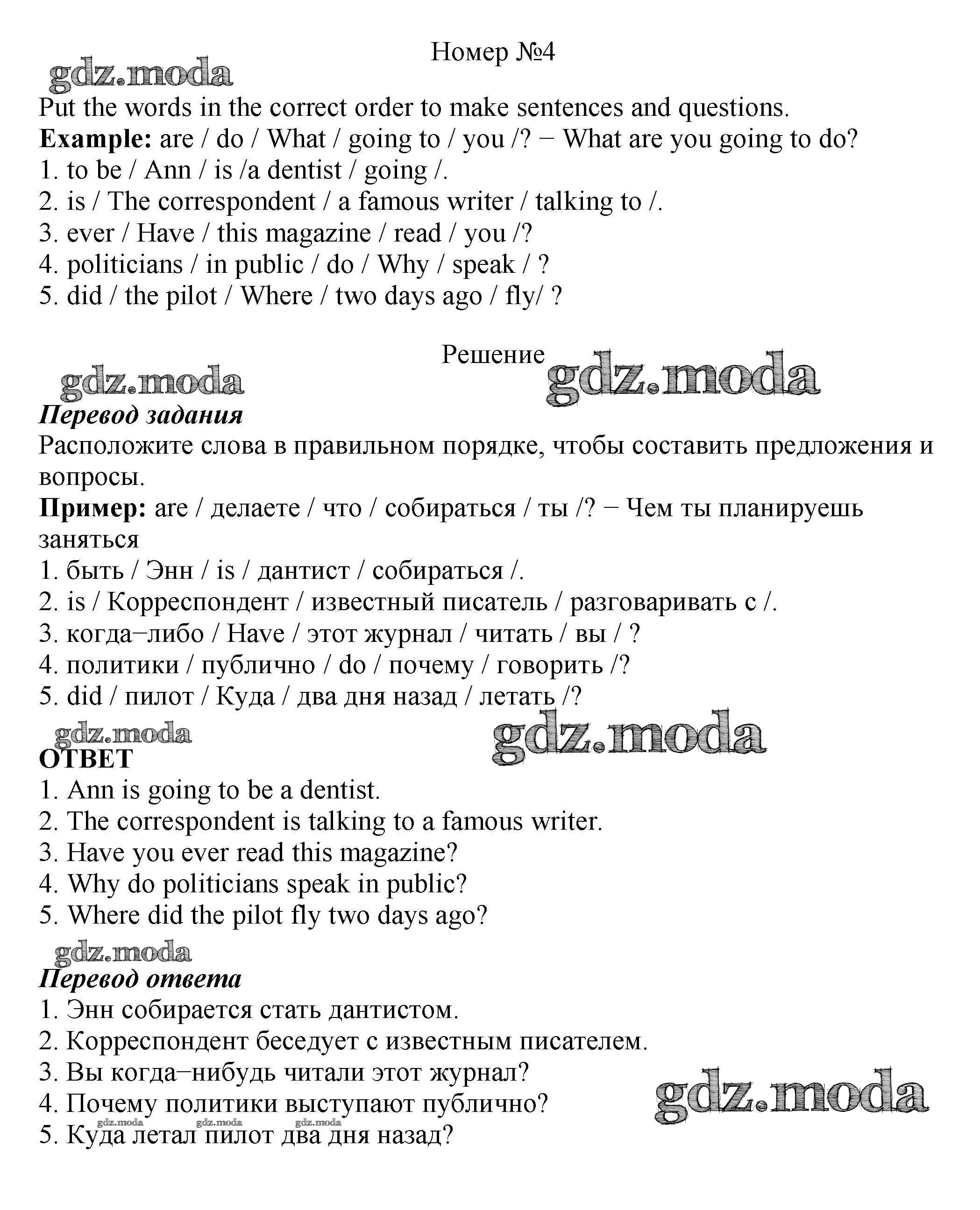 ОТВЕТ на задание № 4 Рабочая тетрадь по Английскому языку 5 класс Биболетова Enjoy English
