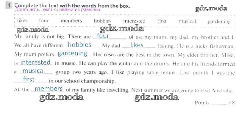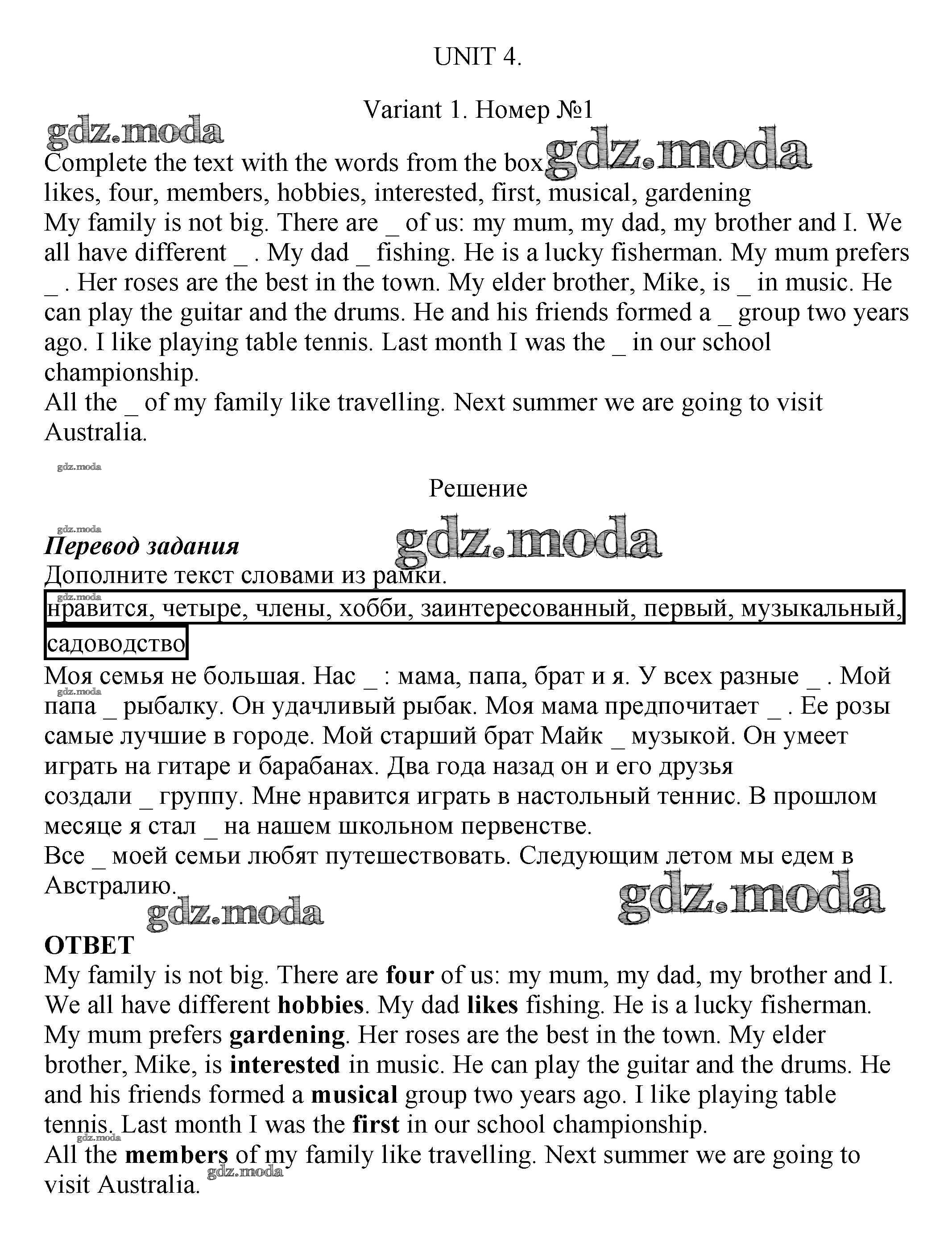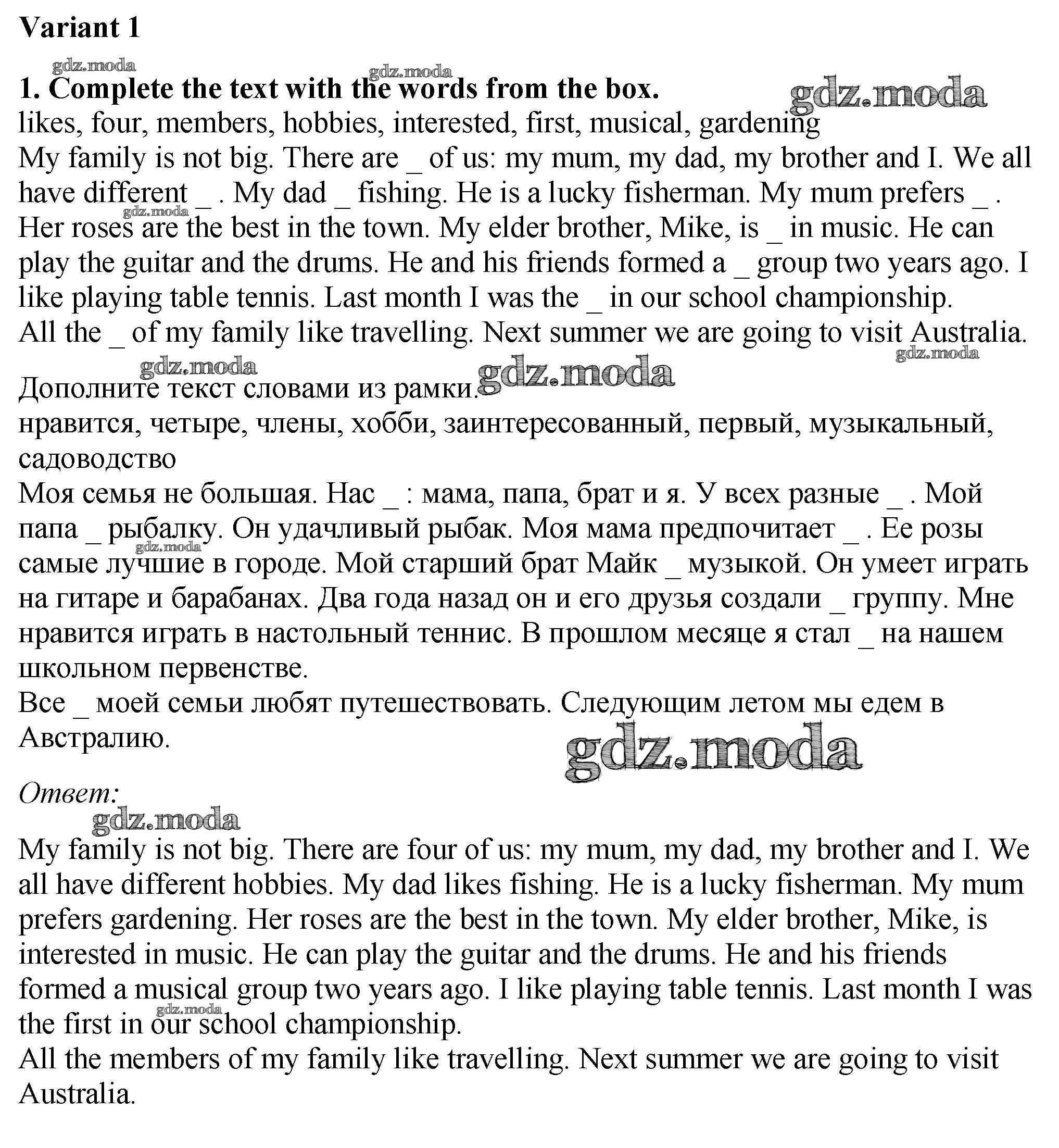 ОТВЕТ на задание № 1 Рабочая тетрадь по Английскому языку 5 класс Биболетова Enjoy English