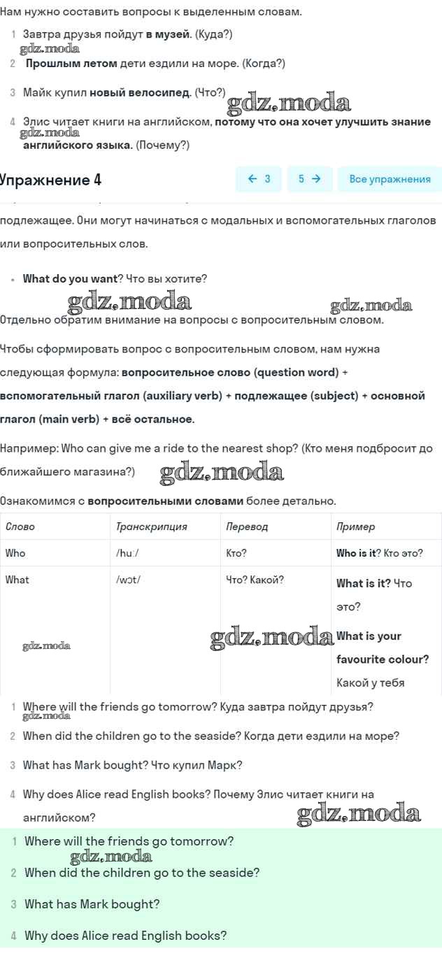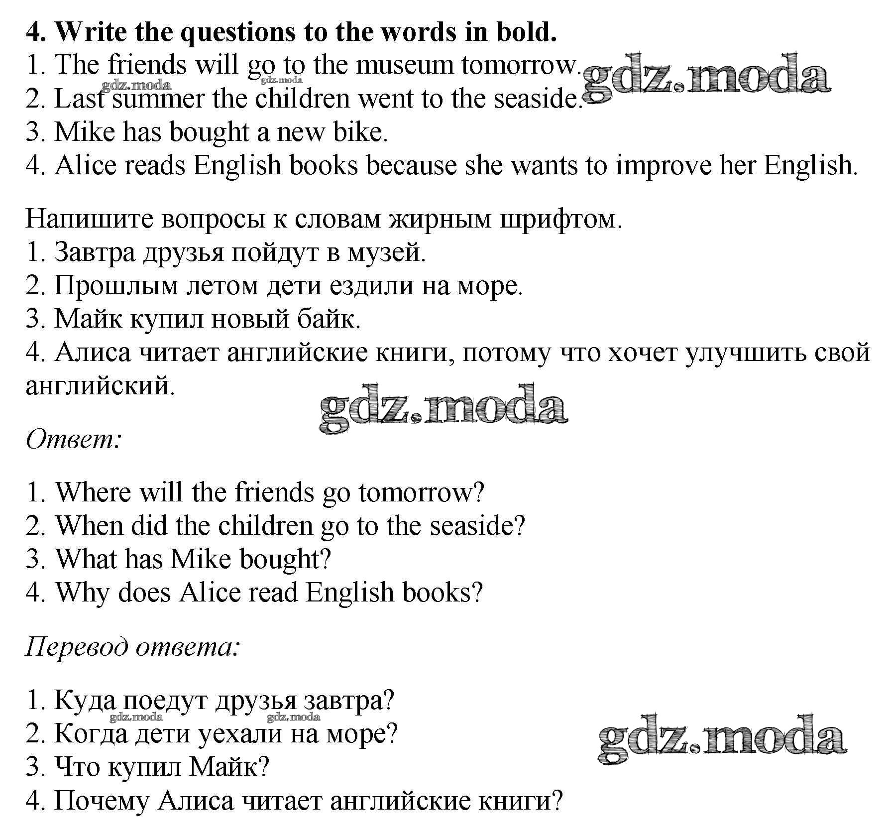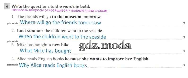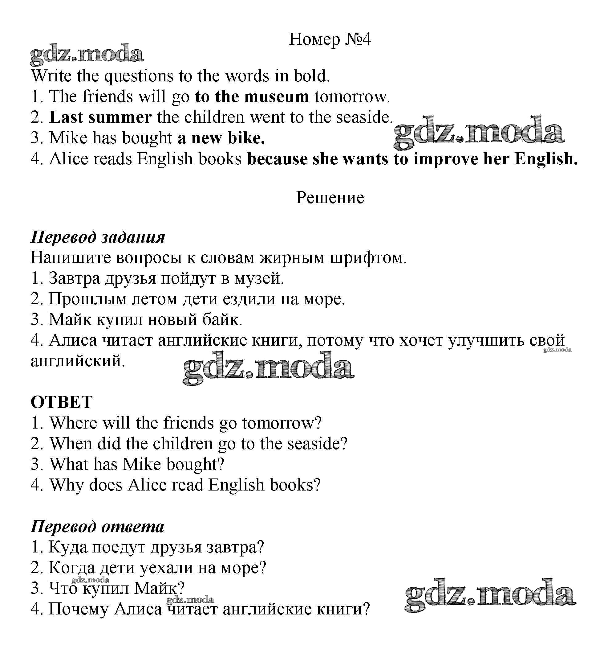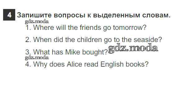 ОТВЕТ на задание № 4 Рабочая тетрадь по Английскому языку 5 класс Биболетова Enjoy English