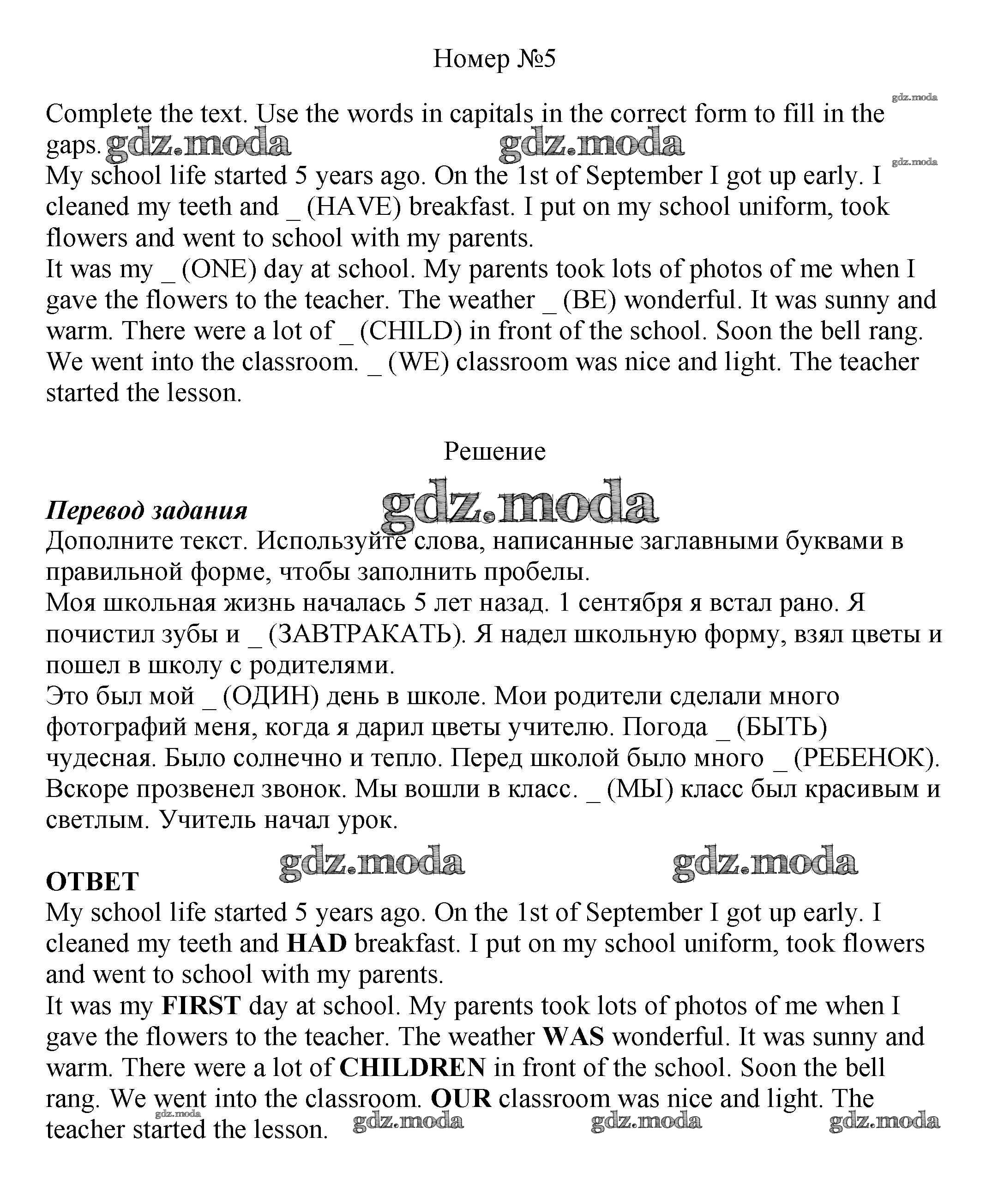 ОТВЕТ на задание № 5 Рабочая тетрадь по Английскому языку 5 класс Биболетова Enjoy English