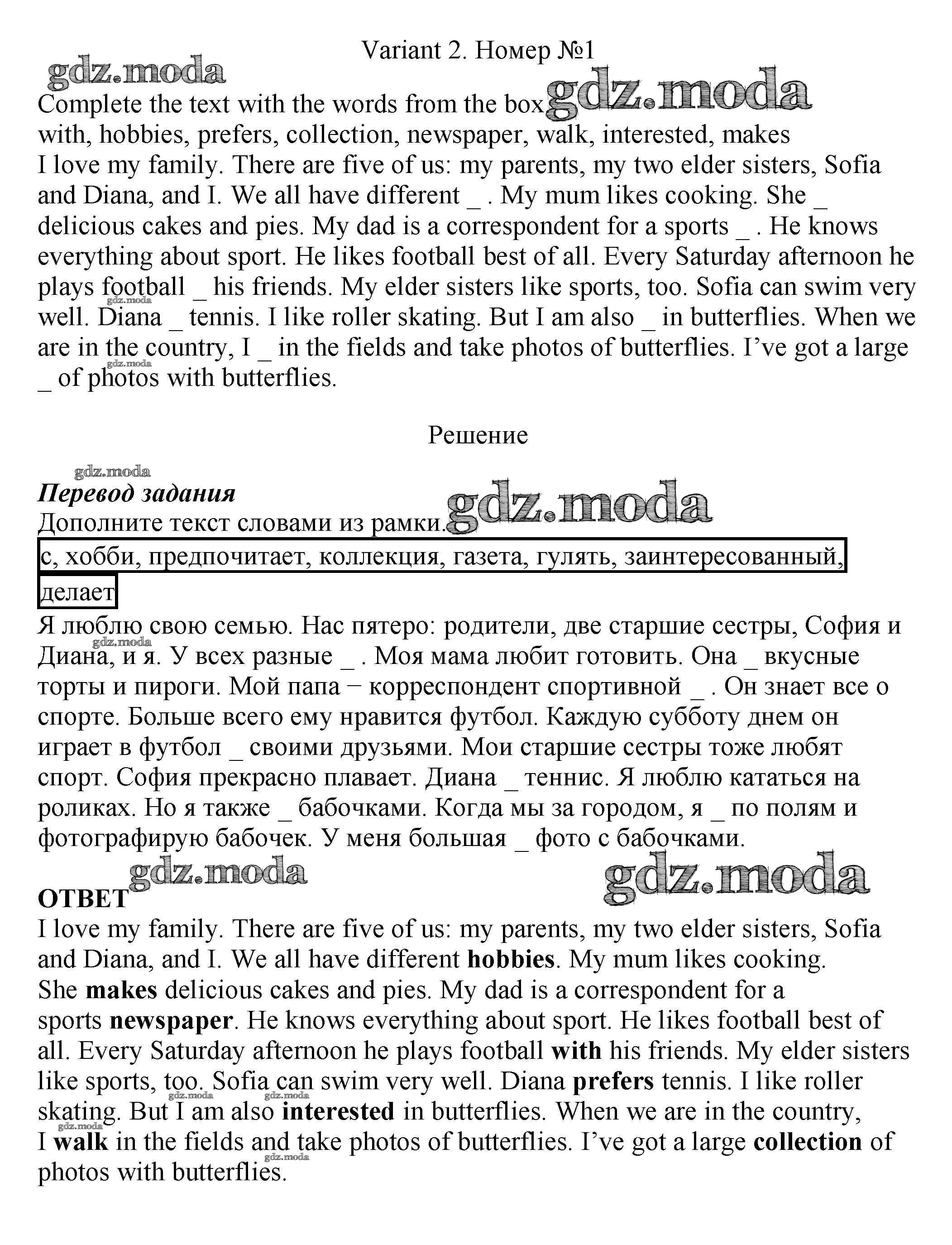 ОТВЕТ на задание № 1 Рабочая тетрадь по Английскому языку 5 класс Биболетова Enjoy English