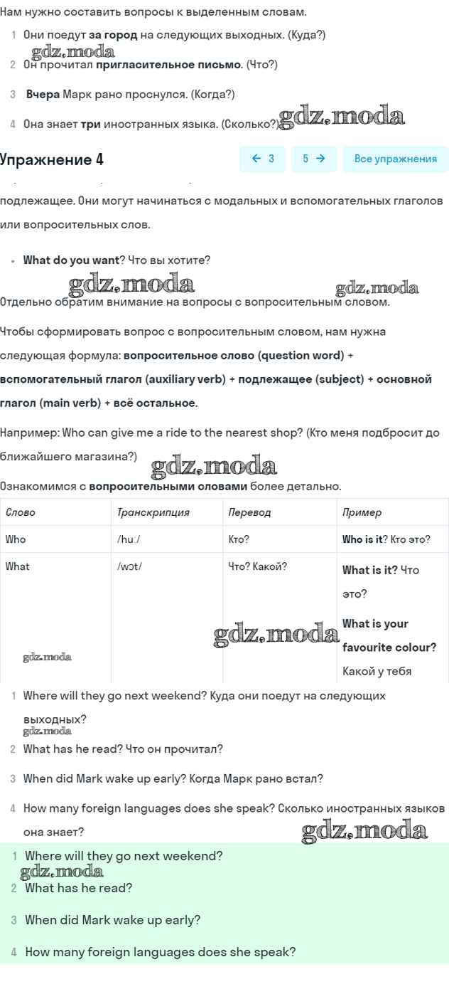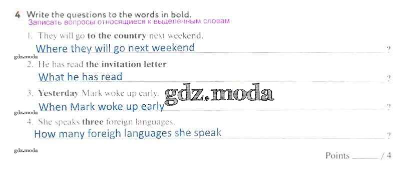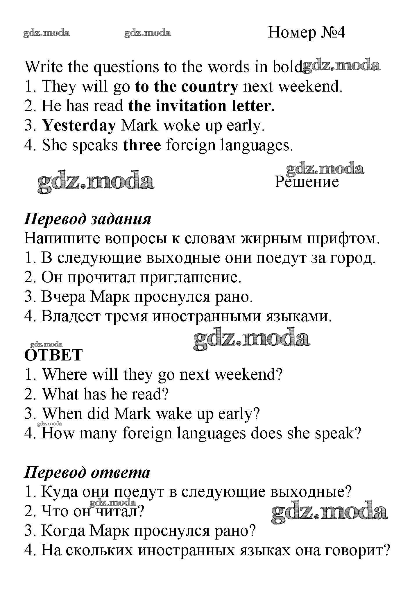 ОТВЕТ на задание № 4 Рабочая тетрадь по Английскому языку 5 класс Биболетова Enjoy English