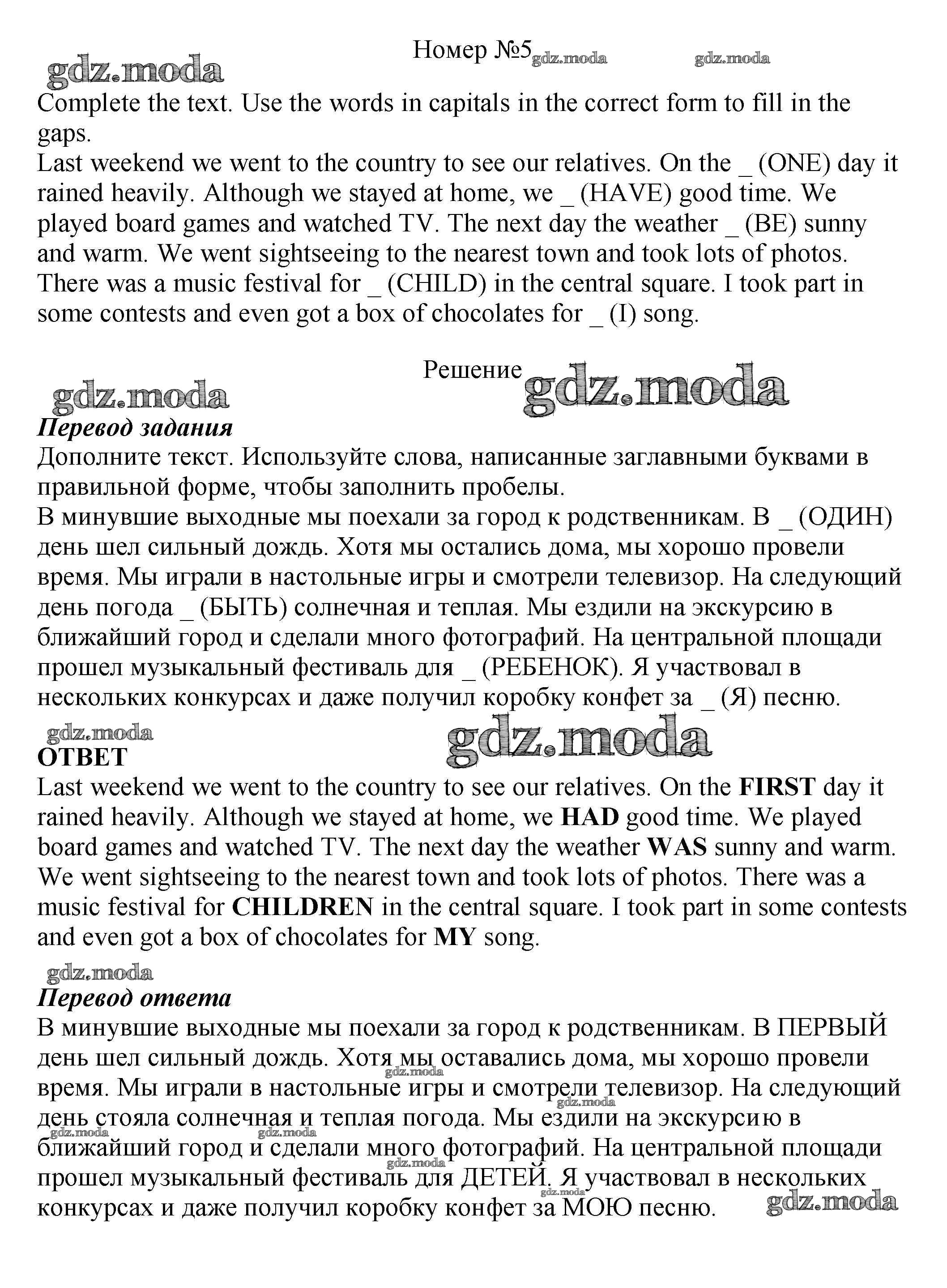 ОТВЕТ на задание № 5 Рабочая тетрадь по Английскому языку 5 класс Биболетова Enjoy English