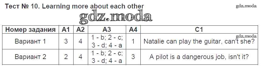 ОТВЕТ на задание № 10 Контрольно-измерительные материалы (КИМ) по Английскому языку 5 класс Лысакова