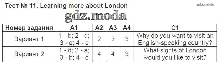 ГДЗ решение к заданию № 11 Английский язык 5 класс КИМ Лысакова Л.В. ВАКО 2017 ФГОС бесплатно на гдз.мода!