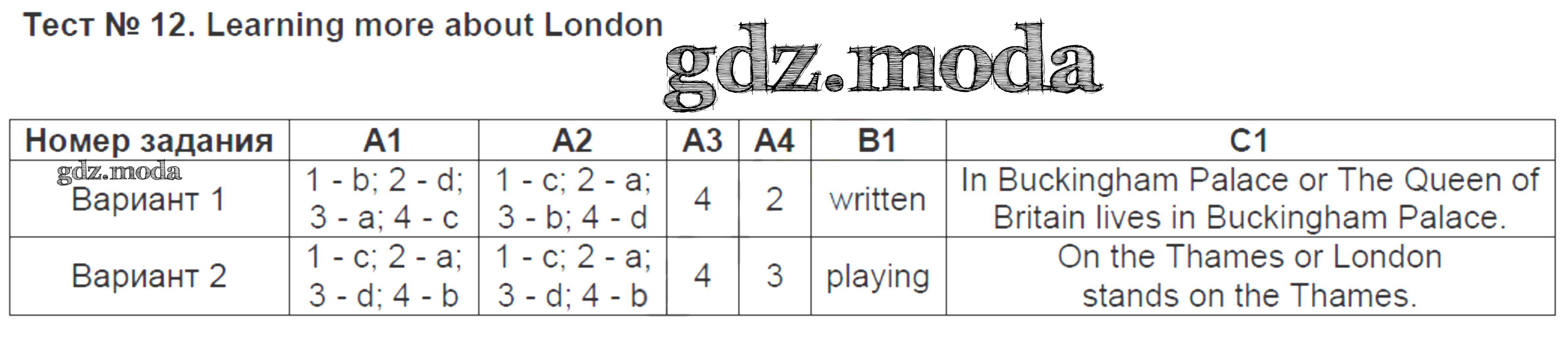 ГДЗ решение к заданию № 12 Английский язык 5 класс КИМ Лысакова Л.В. ВАКО 2017 ФГОС бесплатно на гдз.мода!