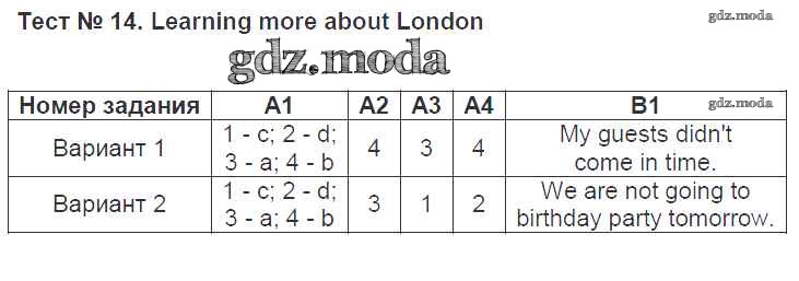 ГДЗ решение к заданию № 14 Английский язык 5 класс КИМ Лысакова Л.В. ВАКО 2017 ФГОС бесплатно на гдз.мода!