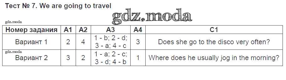ОТВЕТ на задание № 7 Контрольно-измерительные материалы (КИМ) по Английскому языку 5 класс Лысакова