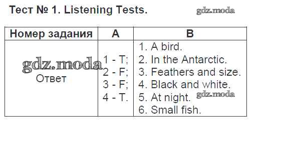 ОТВЕТ на задание № 1 Контрольно-измерительные материалы (КИМ) по Английскому языку 5 класс Лысакова