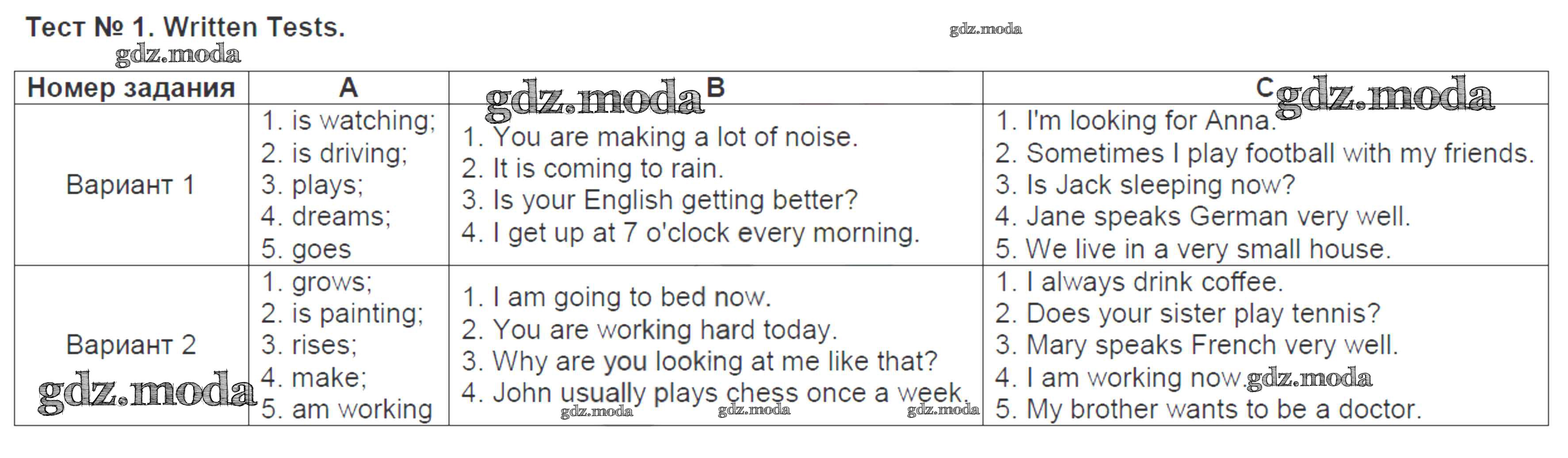 ОТВЕТ на задание № 1 Контрольно-измерительные материалы (КИМ) по Английскому языку 5 класс Лысакова
