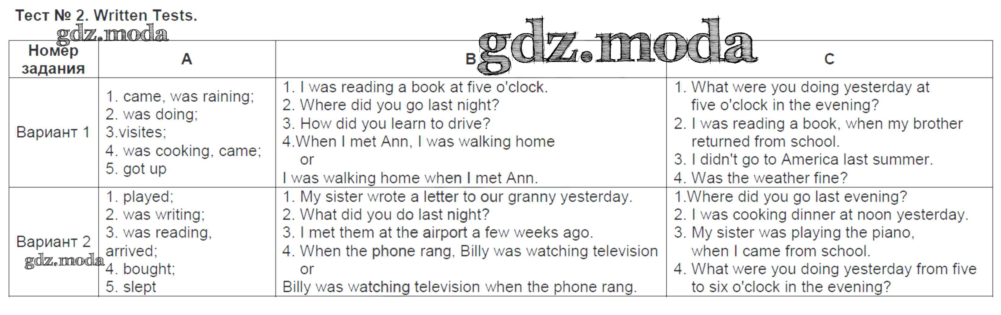 ОТВЕТ на задание № 2 Контрольно-измерительные материалы (КИМ) по Английскому языку 5 класс Лысакова