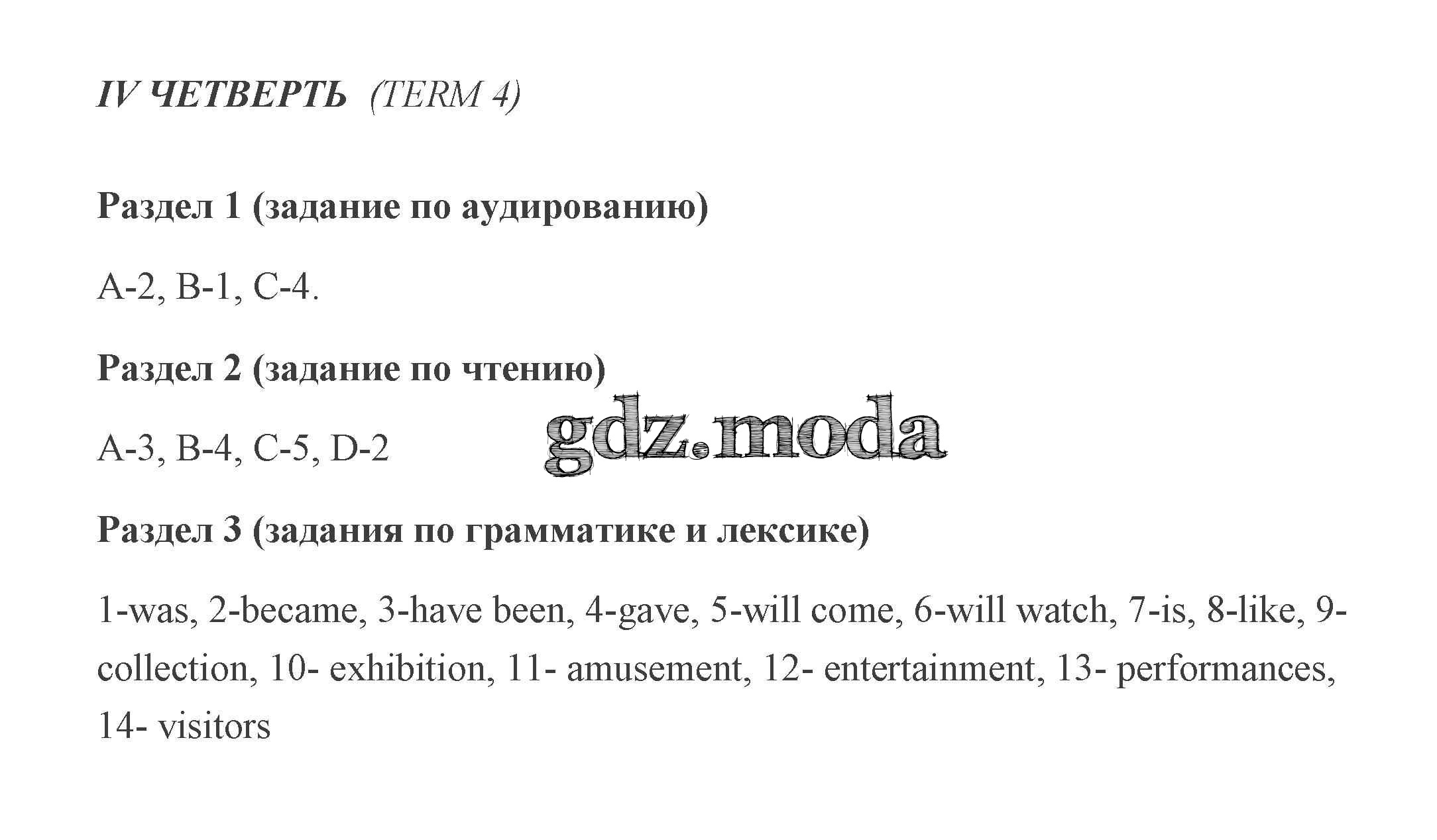 ГДЗ решение к заданию № 4 Английский язык 5 класс контрольные задания Кузовлёв Просвещение 2019 ФГОС бесплатно на гдз.мода!
