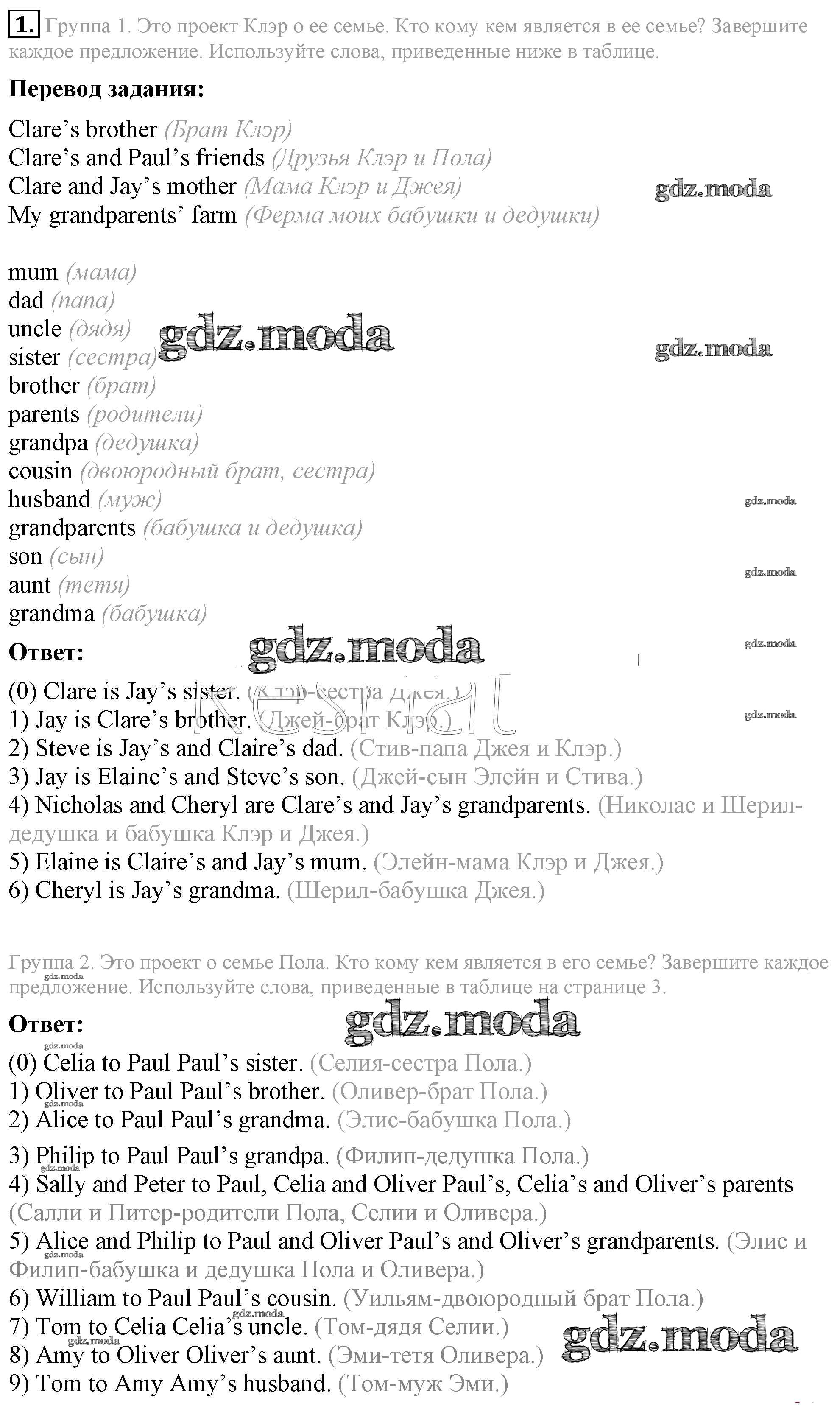 ОТВЕТ на задание № 1 Рабочая тетрадь по Английскому языку 5 класс Кузовлёв Академический школьный учебник