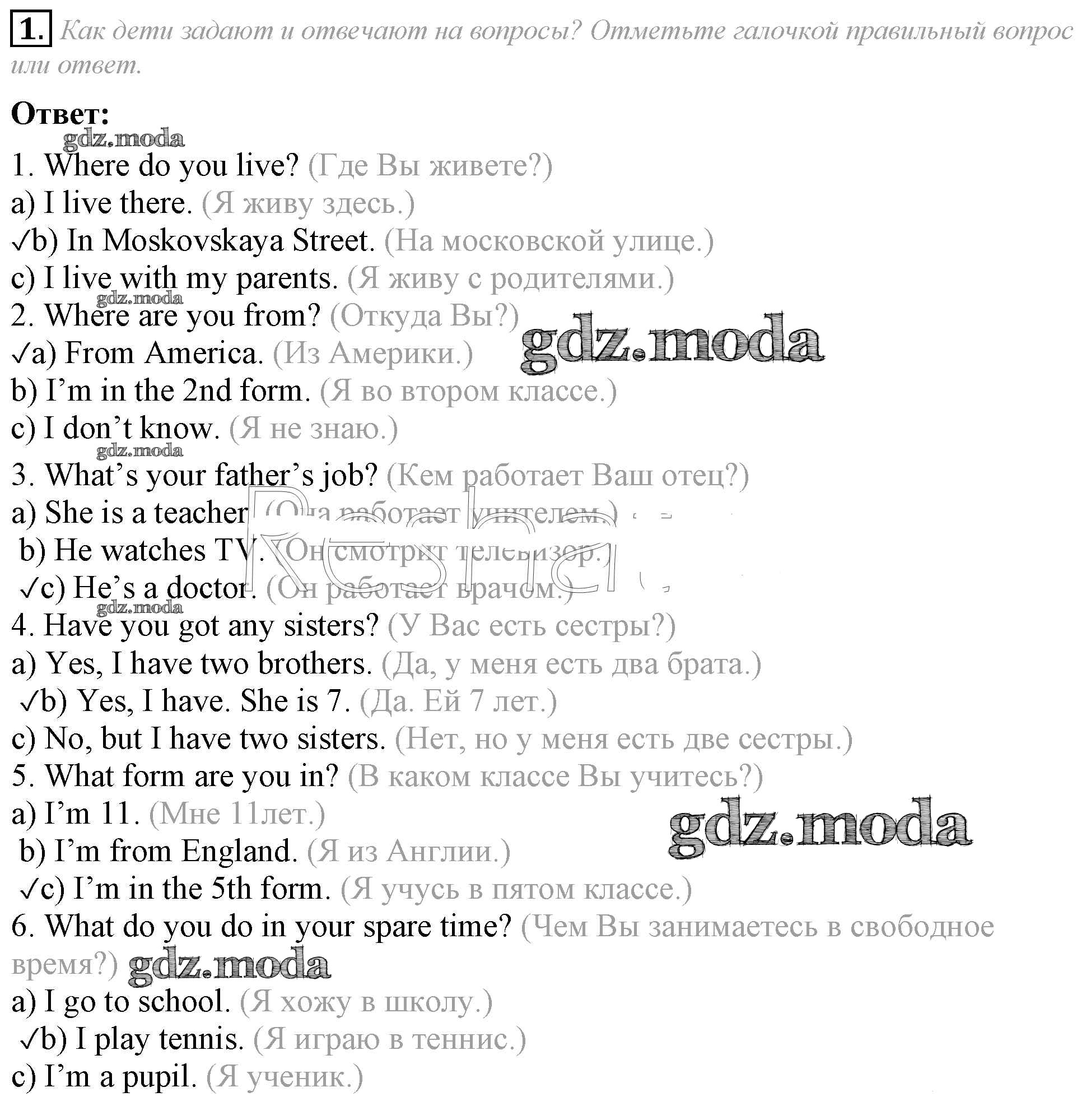 ОТВЕТ на задание № 1 Рабочая тетрадь по Английскому языку 5 класс Кузовлёв Академический школьный учебник
