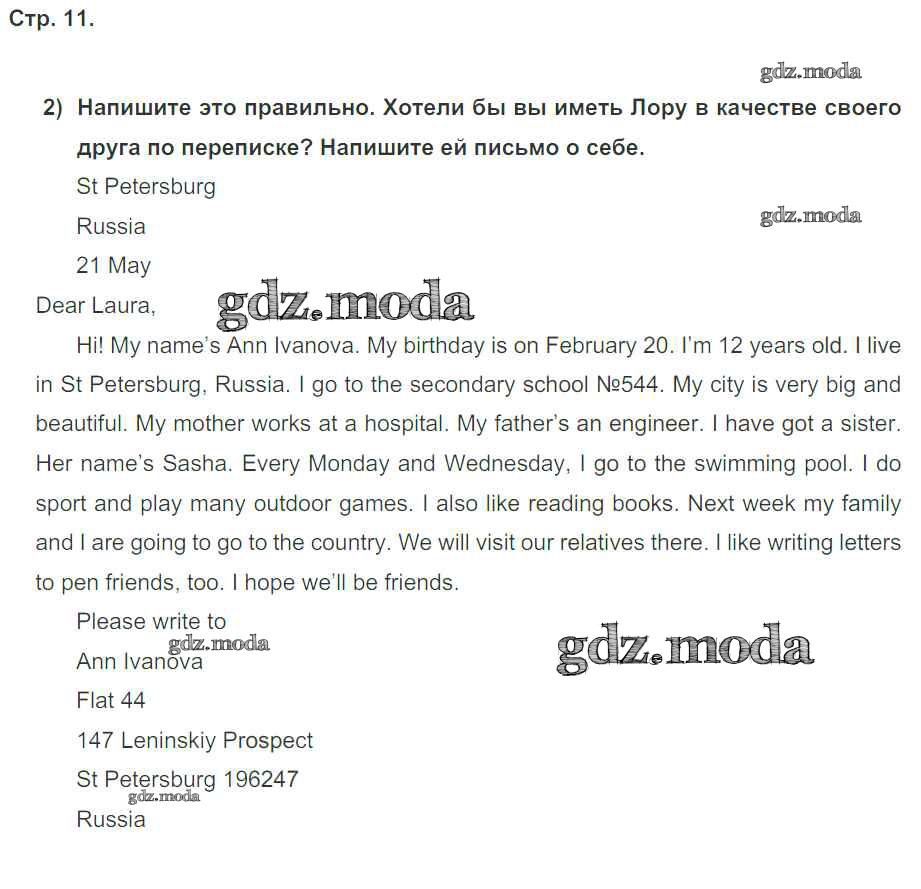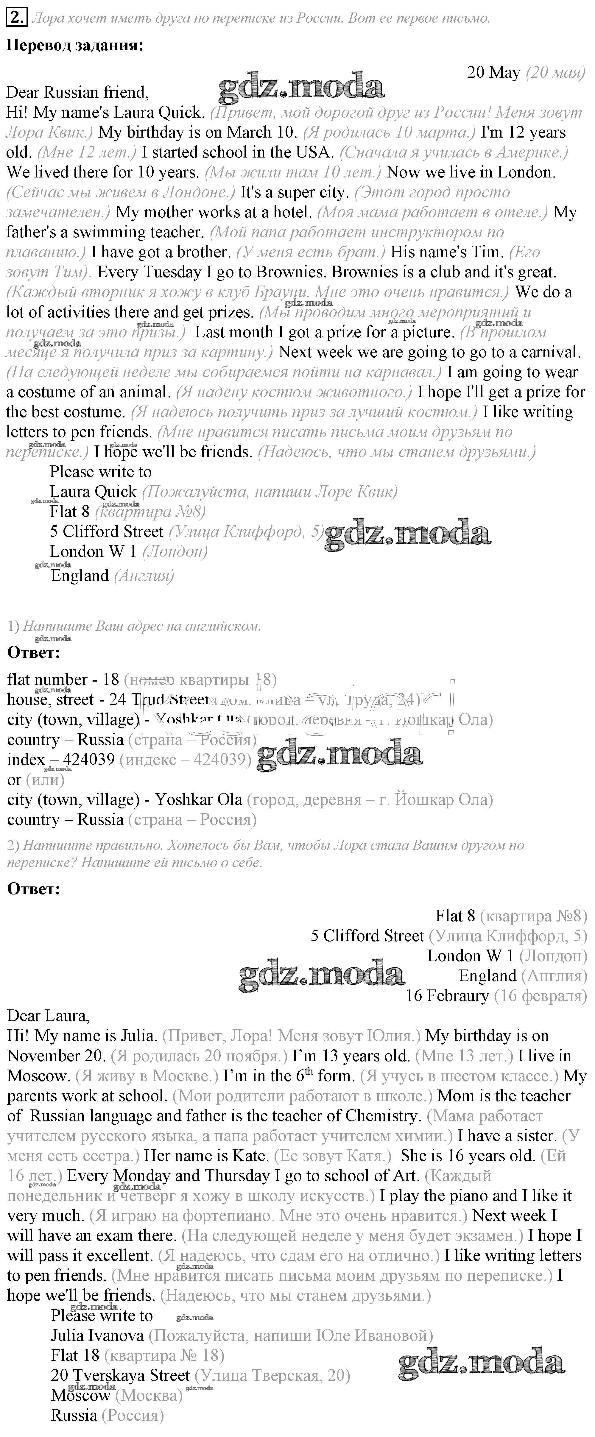 ОТВЕТ на задание № 2 Рабочая тетрадь по Английскому языку 5 класс Кузовлёв Академический школьный учебник