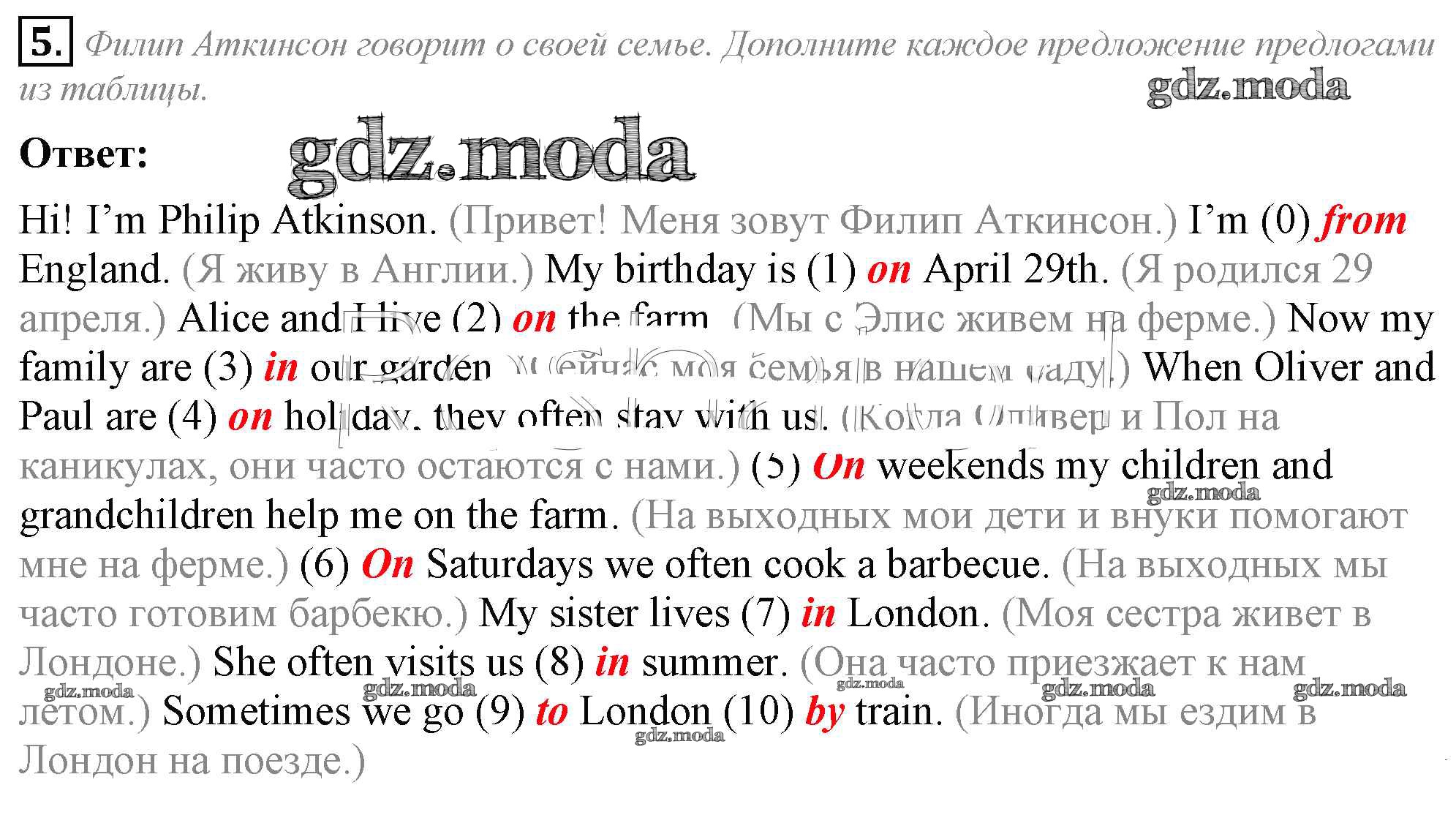 ОТВЕТ на задание № 5 Рабочая тетрадь по Английскому языку 5 класс Кузовлёв Академический школьный учебник