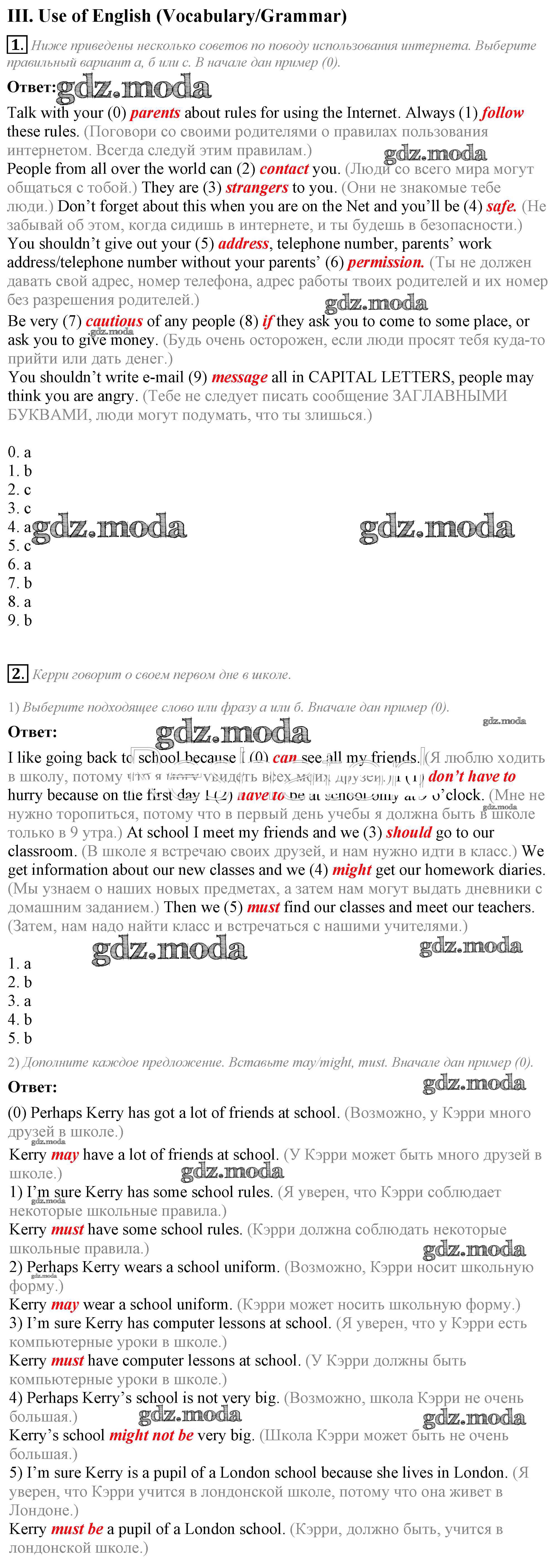 ОТВЕТ на задание № III Рабочая тетрадь по Английскому языку 5 класс Кузовлёв Академический школьный учебник