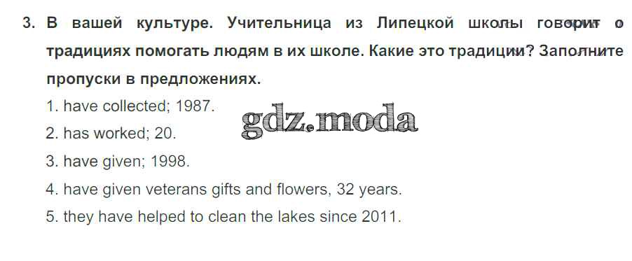 ОТВЕТ на задание № 3 Рабочая тетрадь по Английскому языку 5 класс Кузовлёв Академический школьный учебник