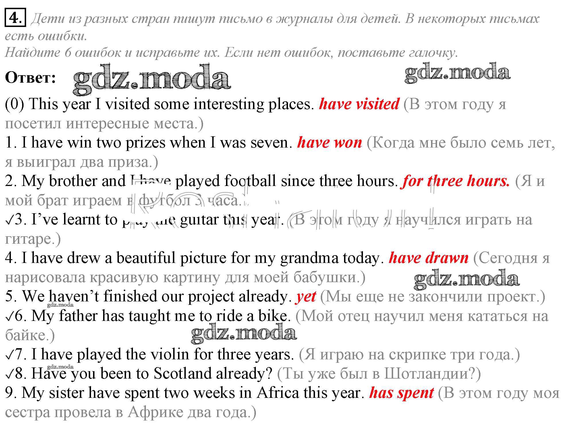 ОТВЕТ на задание № 4 Рабочая тетрадь по Английскому языку 5 класс Кузовлёв Академический школьный учебник