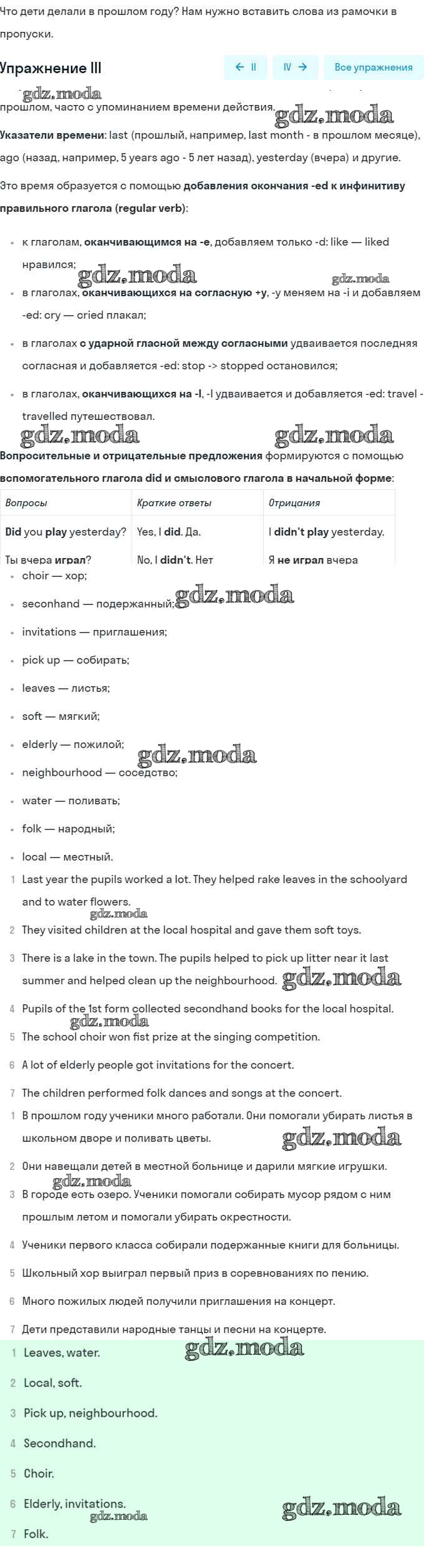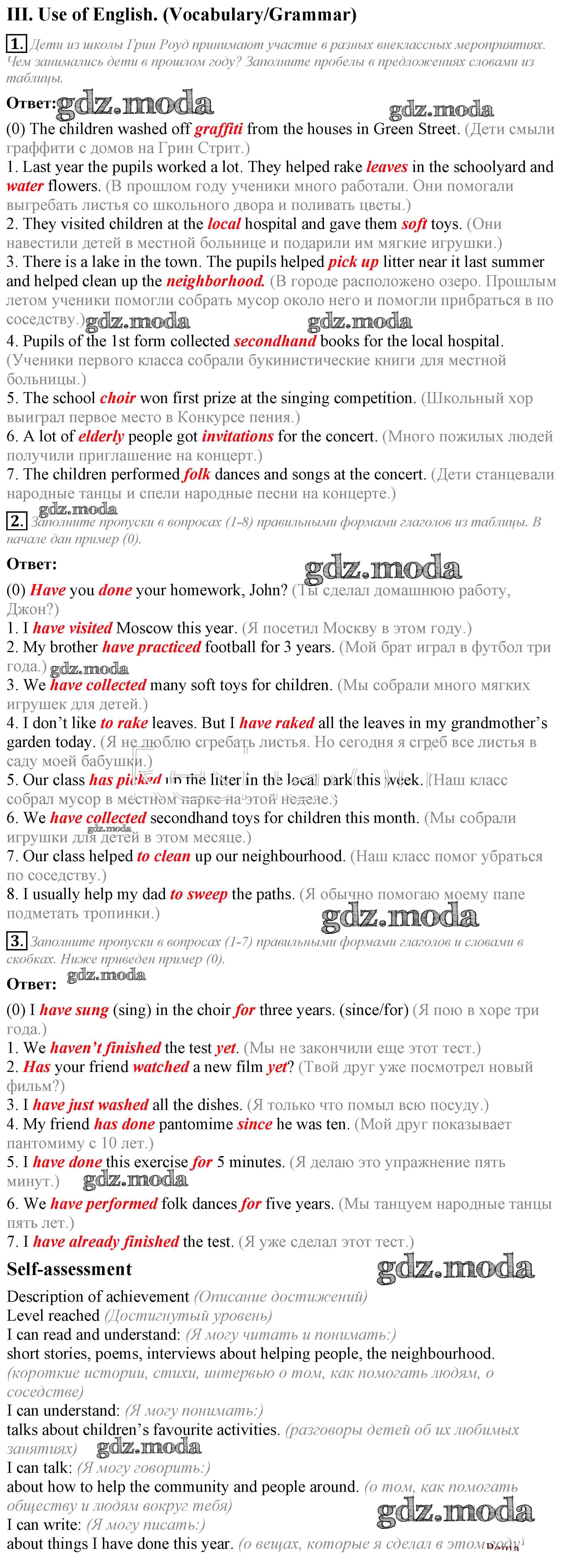 ОТВЕТ на задание № III Рабочая тетрадь по Английскому языку 5 класс Кузовлёв Академический школьный учебник