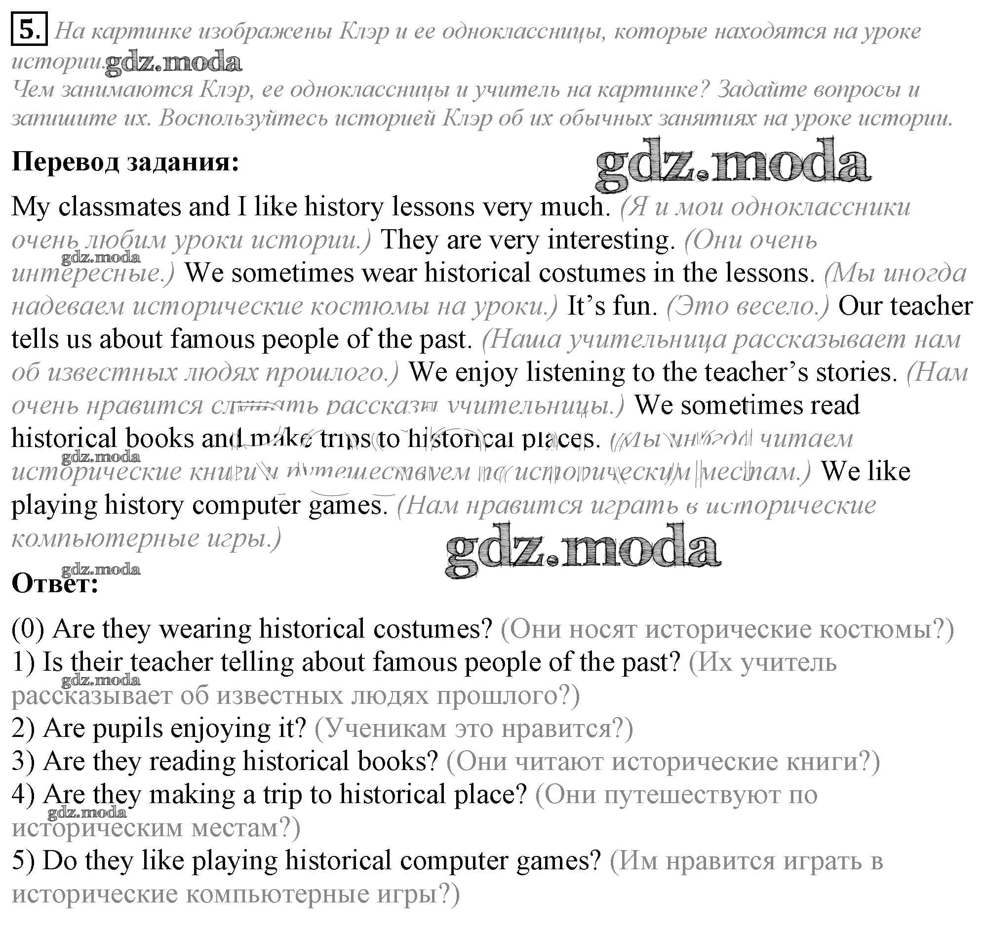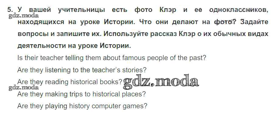 ОТВЕТ на задание № 5 Рабочая тетрадь по Английскому языку 5 класс Кузовлёв Академический школьный учебник