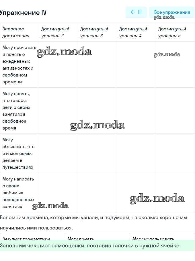 ОТВЕТ на задание № IV Рабочая тетрадь по Английскому языку 5 класс Кузовлёв Академический школьный учебник