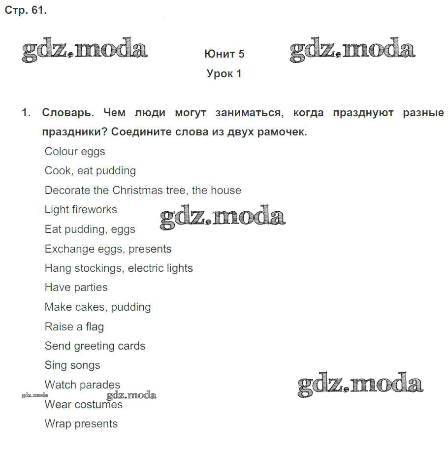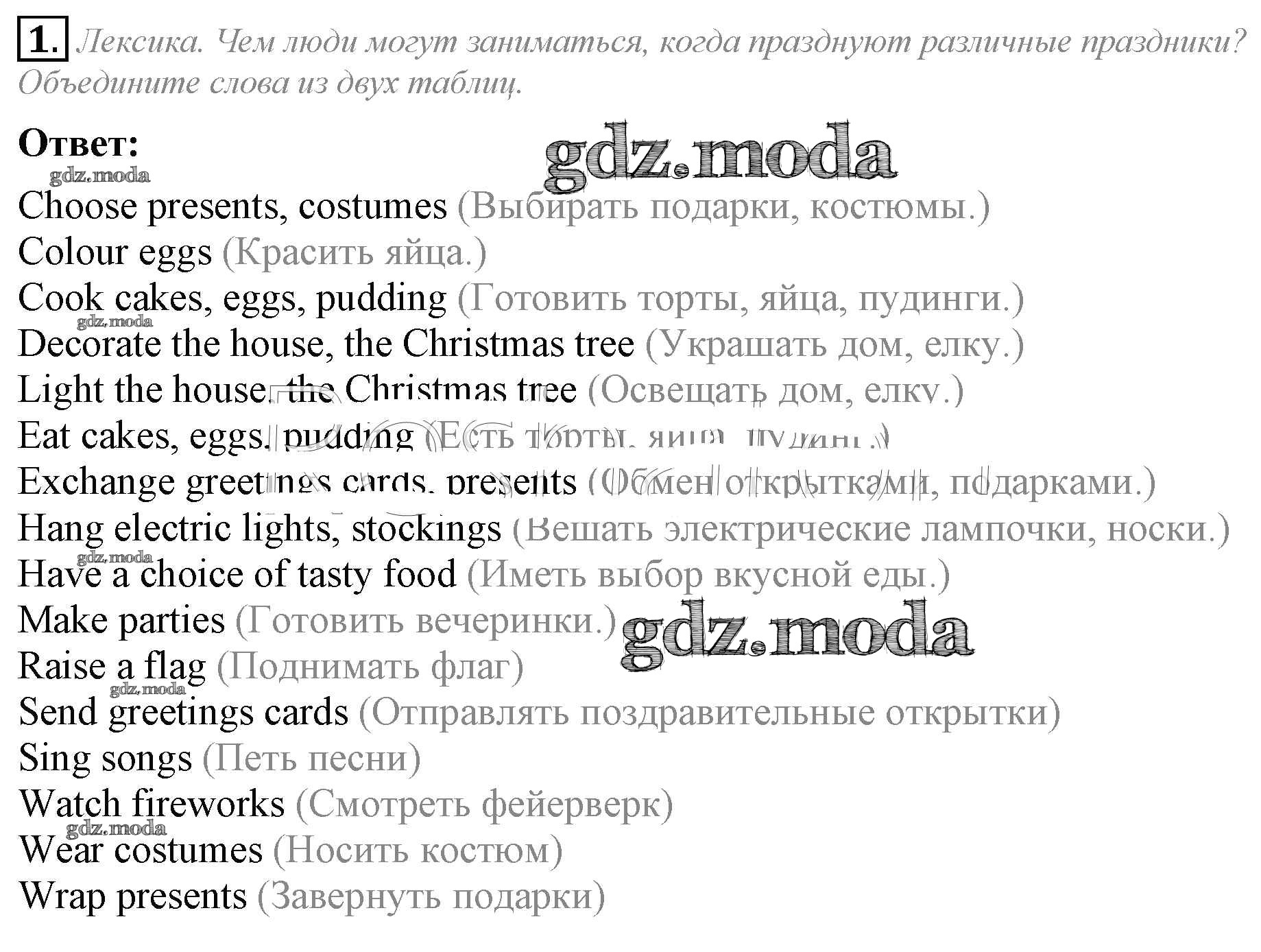 ОТВЕТ на задание № 1 Рабочая тетрадь по Английскому языку 5 класс Кузовлёв Академический школьный учебник