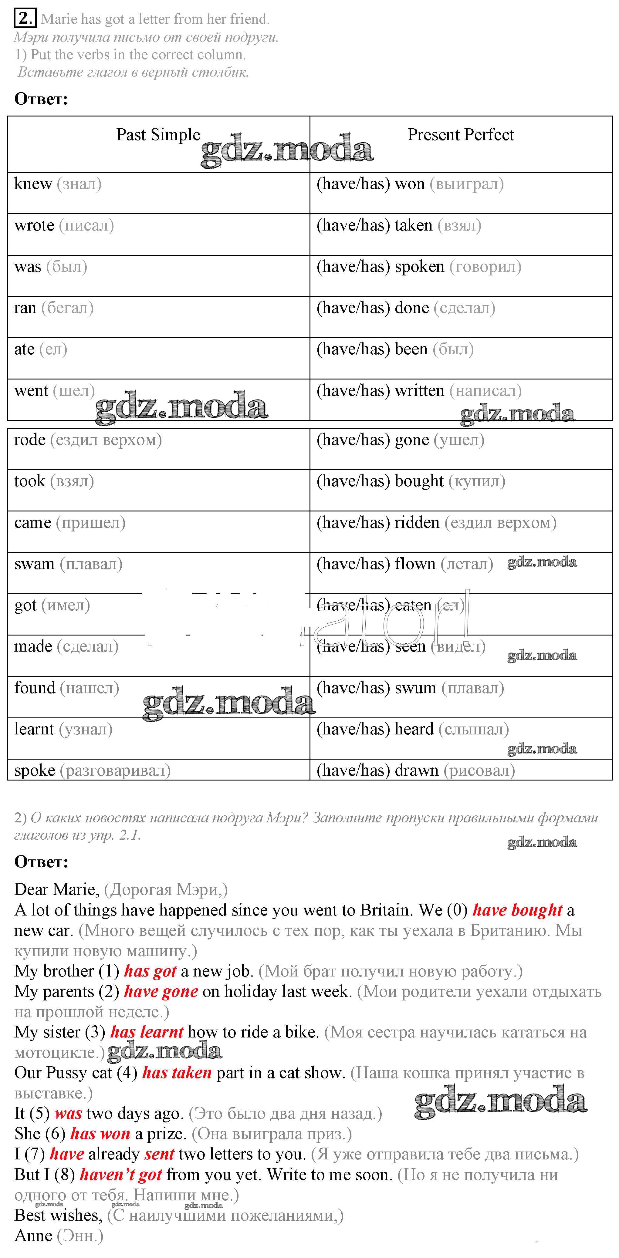 ОТВЕТ на задание № 2 Рабочая тетрадь по Английскому языку 5 класс Кузовлёв Академический школьный учебник