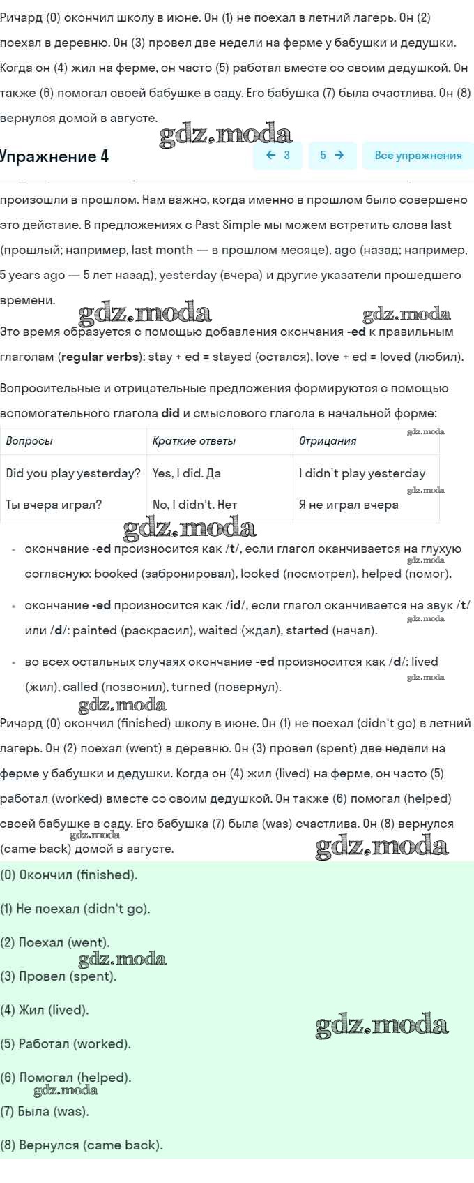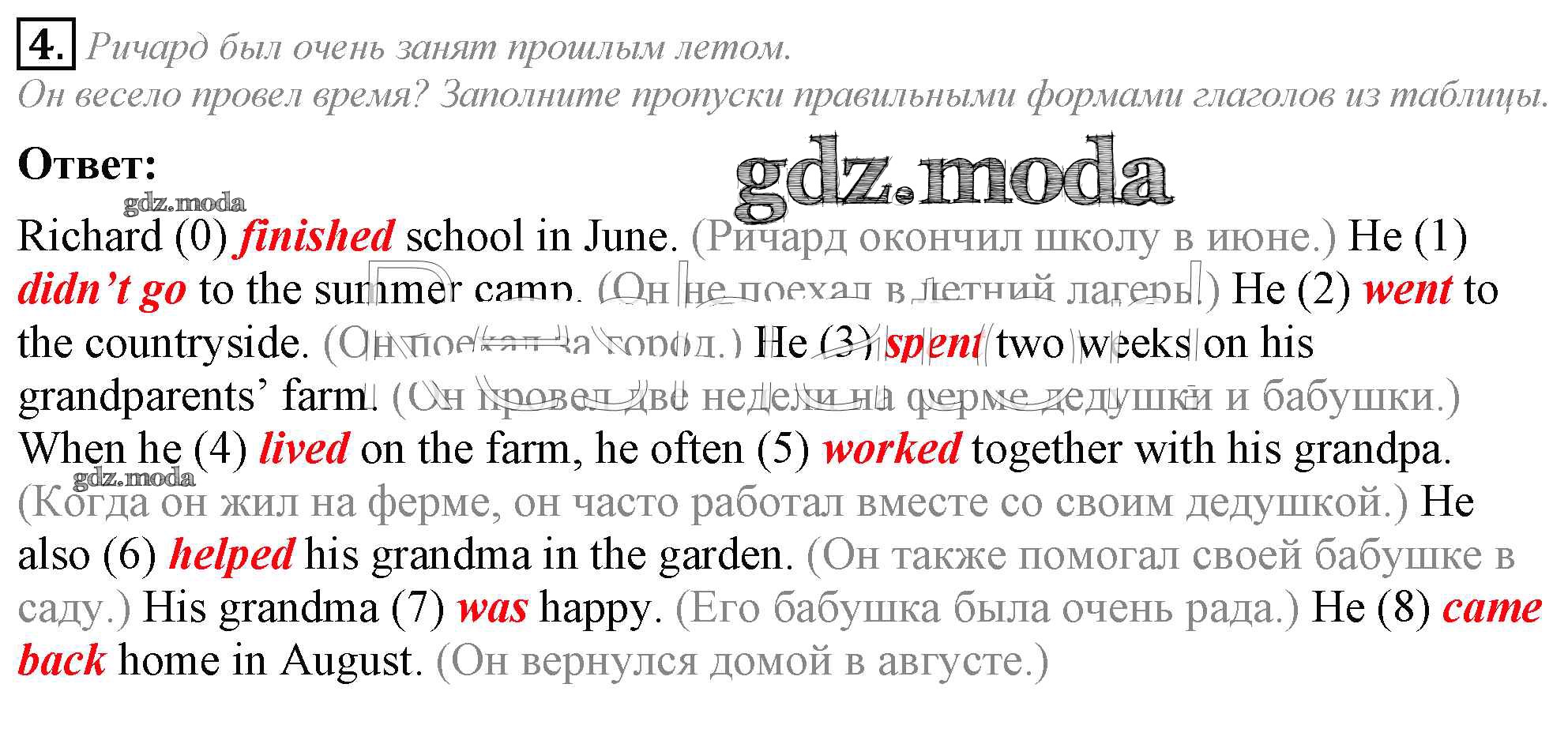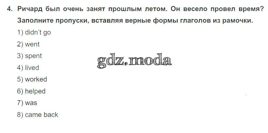 ОТВЕТ на задание № 4 Рабочая тетрадь по Английскому языку 5 класс Кузовлёв Академический школьный учебник