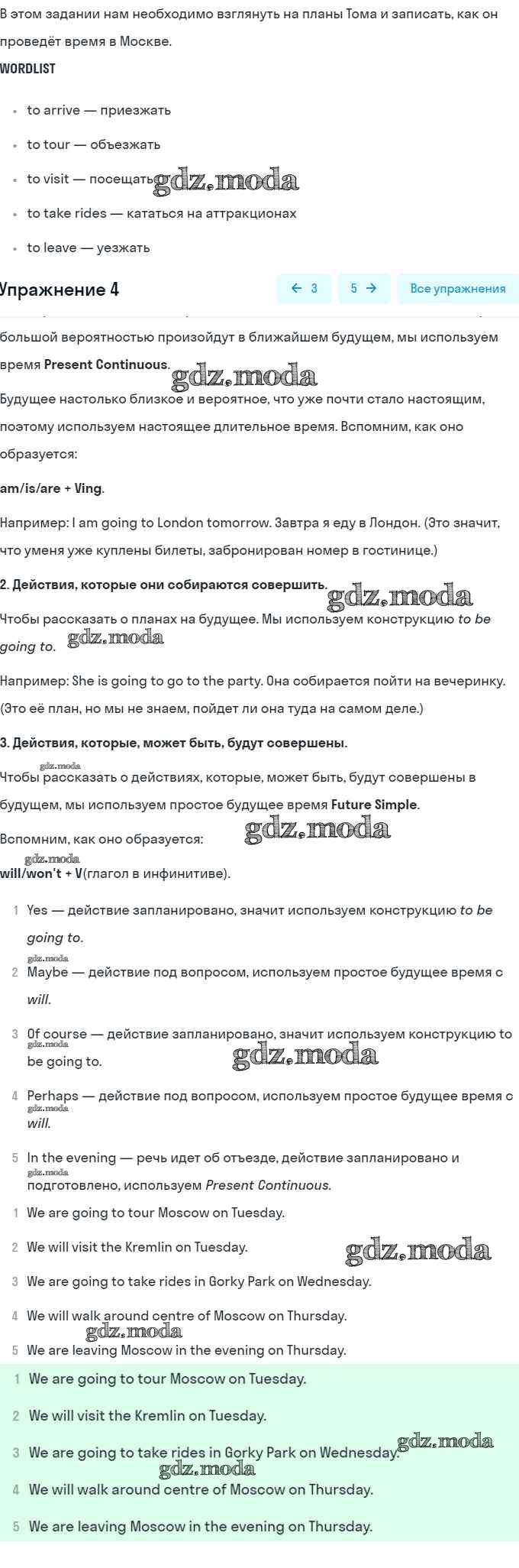 ОТВЕТ на задание № 4 Рабочая тетрадь по Английскому языку 5 класс Кузовлёв Академический школьный учебник