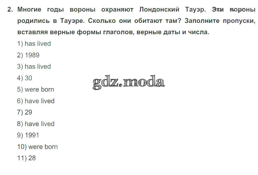 ОТВЕТ на задание № 2 Рабочая тетрадь по Английскому языку 5 класс Кузовлёв Академический школьный учебник