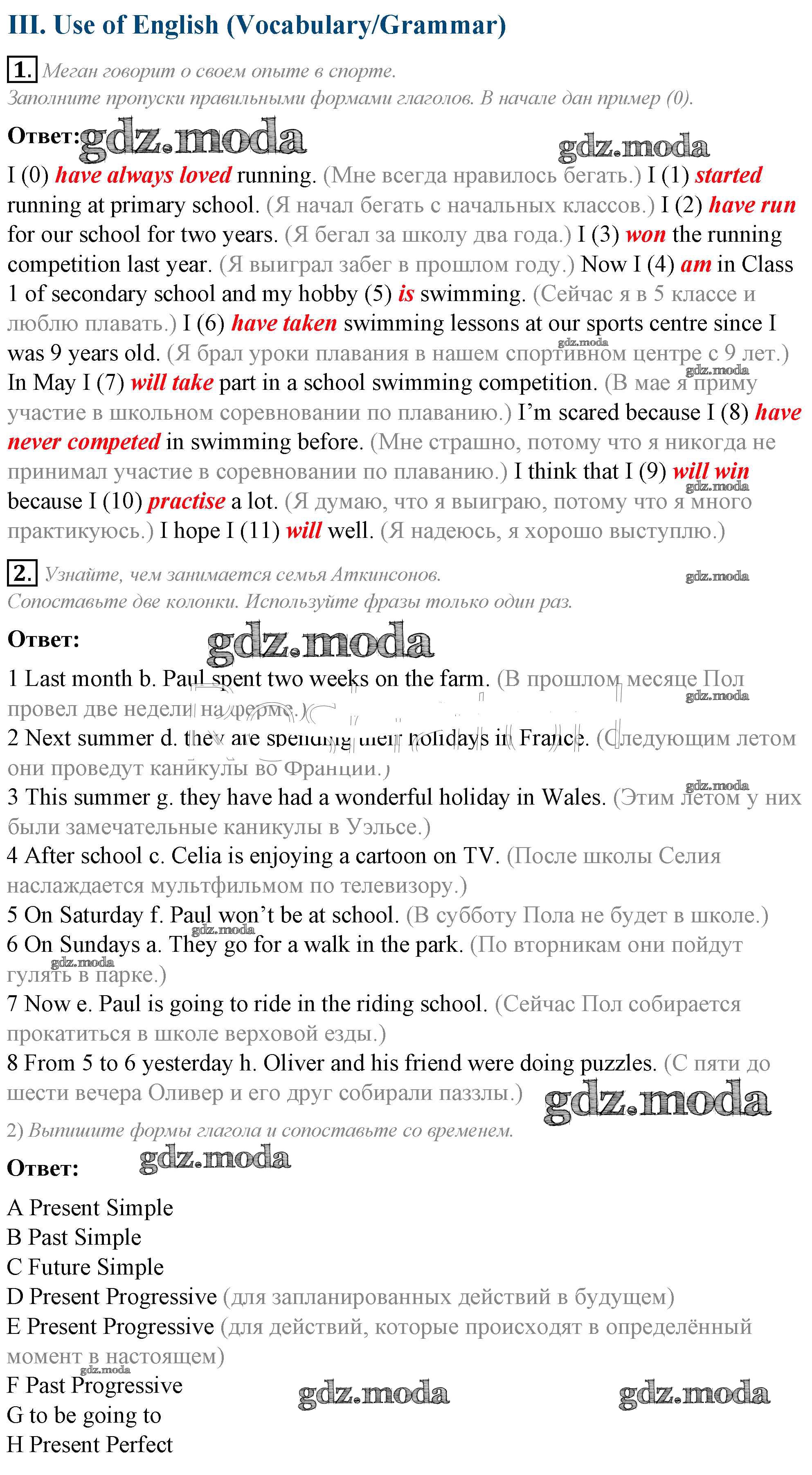 ОТВЕТ на задание № III Рабочая тетрадь по Английскому языку 5 класс Кузовлёв Академический школьный учебник