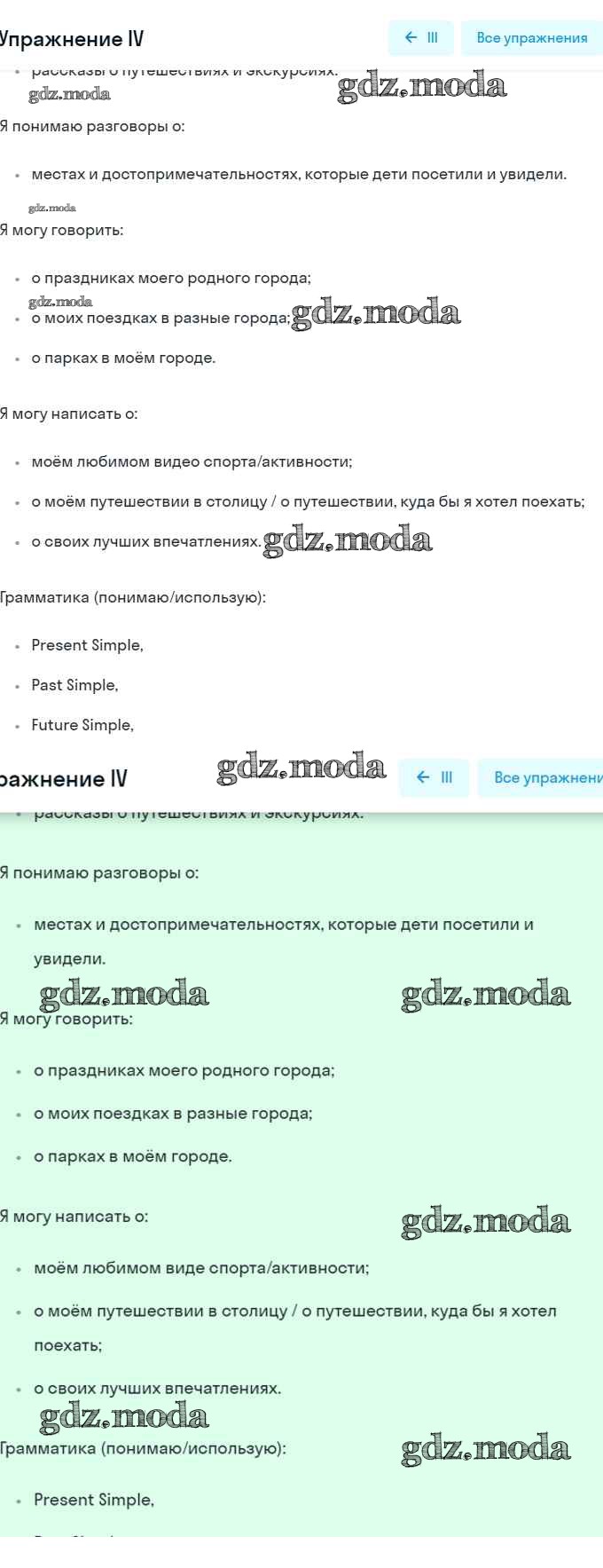 ОТВЕТ на задание № IV Рабочая тетрадь по Английскому языку 5 класс Кузовлёв Академический школьный учебник