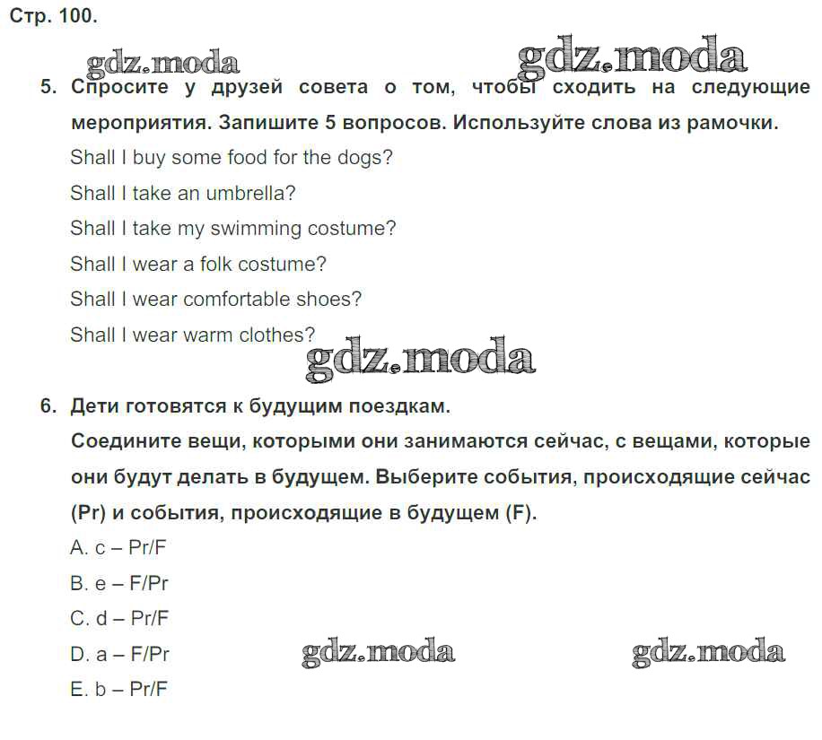 ОТВЕТ на задание № стр. 100 Рабочая тетрадь по Английскому языку 5 класс Кузовлёв Академический школьный учебник