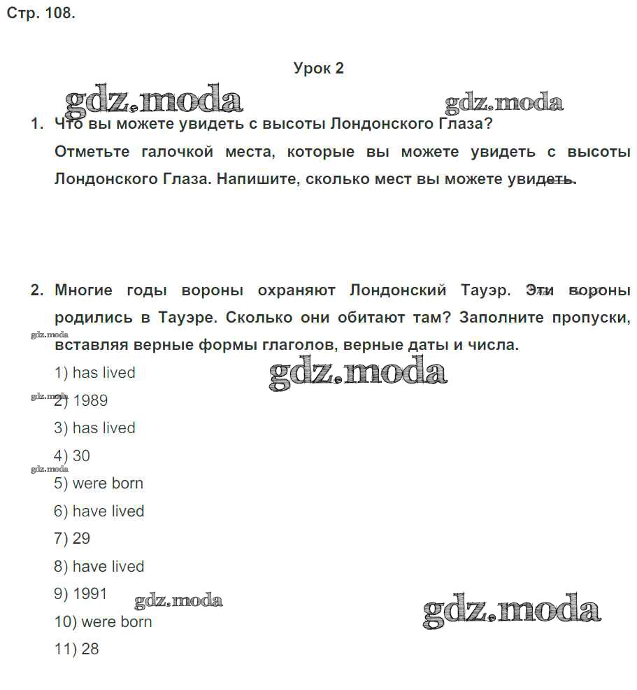 ОТВЕТ на задание № стр. 108 Рабочая тетрадь по Английскому языку 5 класс Кузовлёв Академический школьный учебник