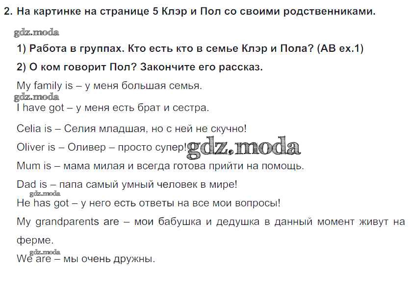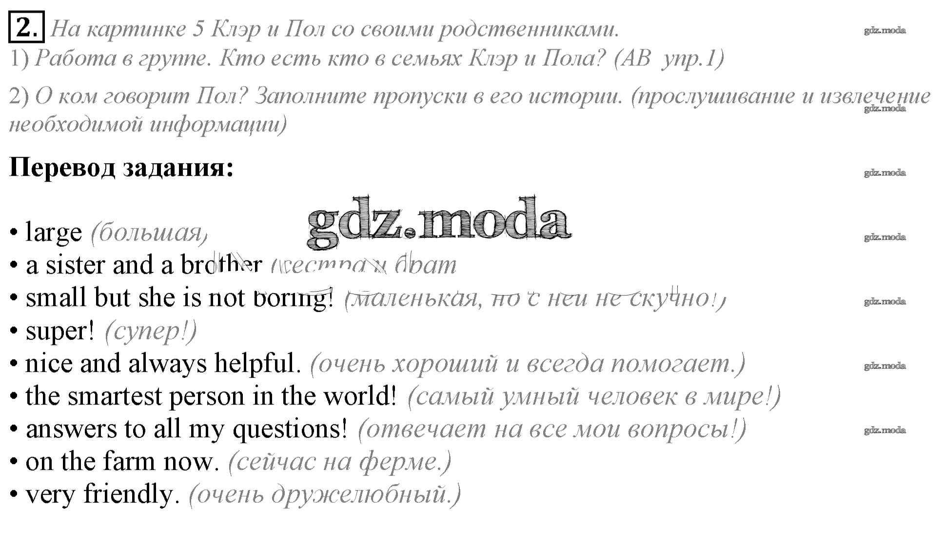 ГДЗ решение к заданию № 2 Английский язык 5 класс Кузовлёв В.П. Просвещение 2015 ФГОС бесплатно на гдз.мода!