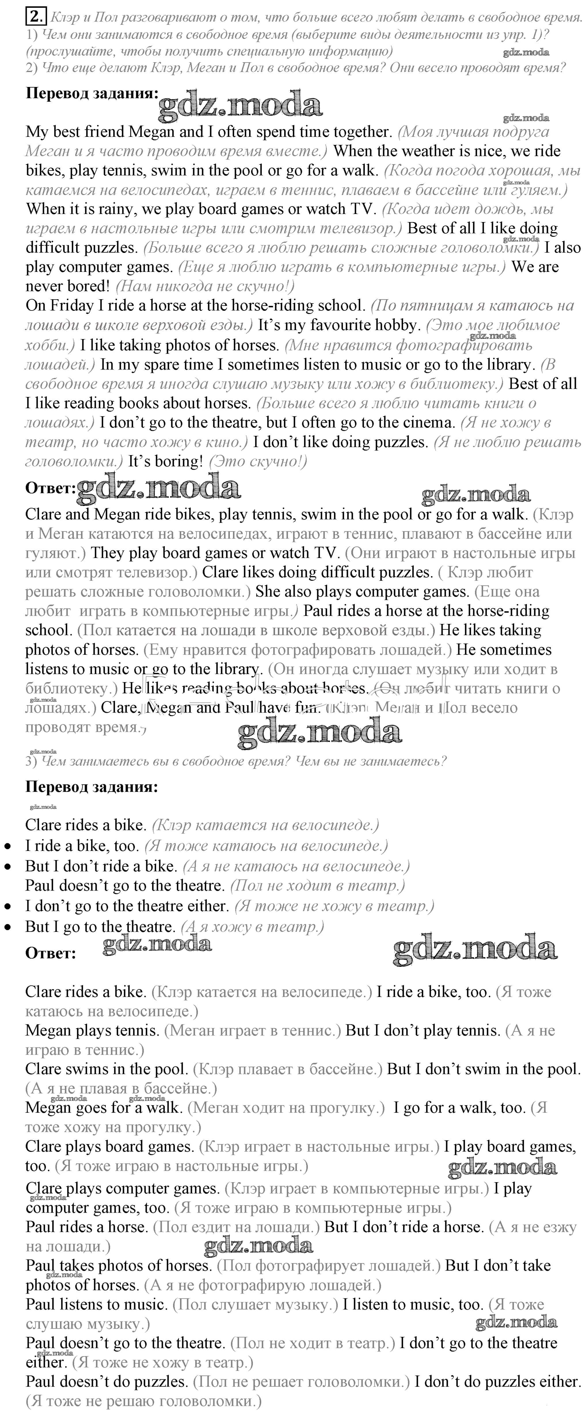 ГДЗ решение к заданию № 2 Английский язык 5 класс Кузовлёв В.П. Просвещение 2015 ФГОС бесплатно на гдз.мода!