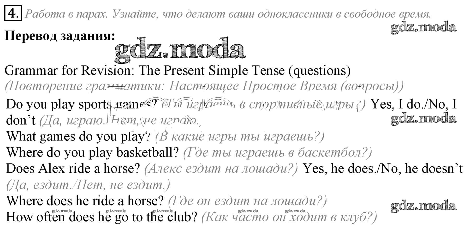 ГДЗ решение к заданию № 4 Английский язык 5 класс Кузовлёв В.П. Просвещение 2015 ФГОС бесплатно на гдз.мода!